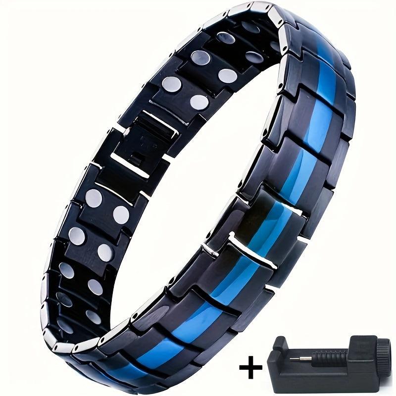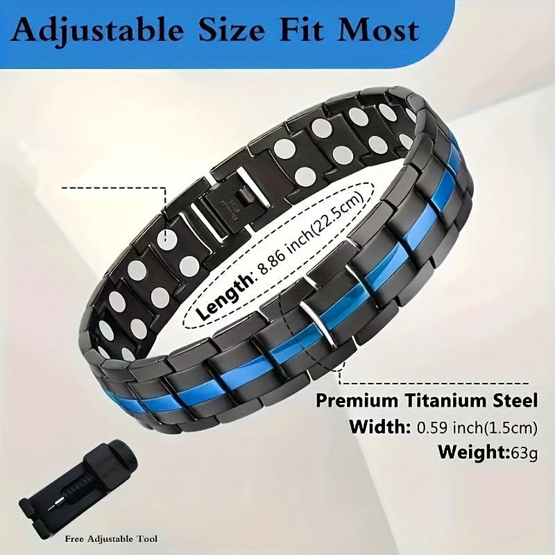 This stainless steel bracelet is a perfect gift for father's day or Christmas. The wide band design with striped pattern adds a stylish touch to any outfit.