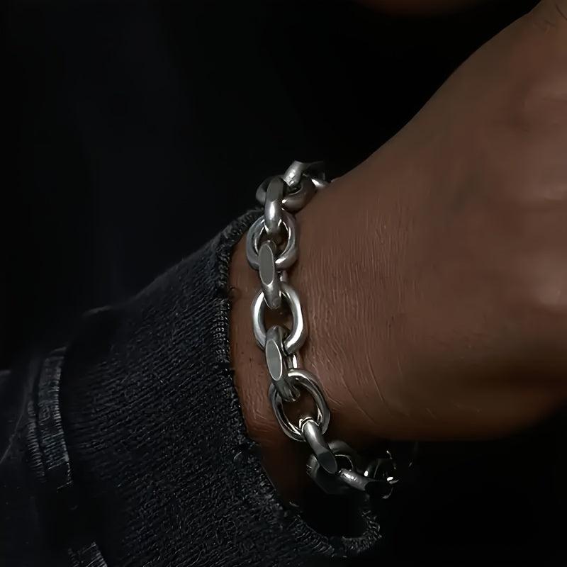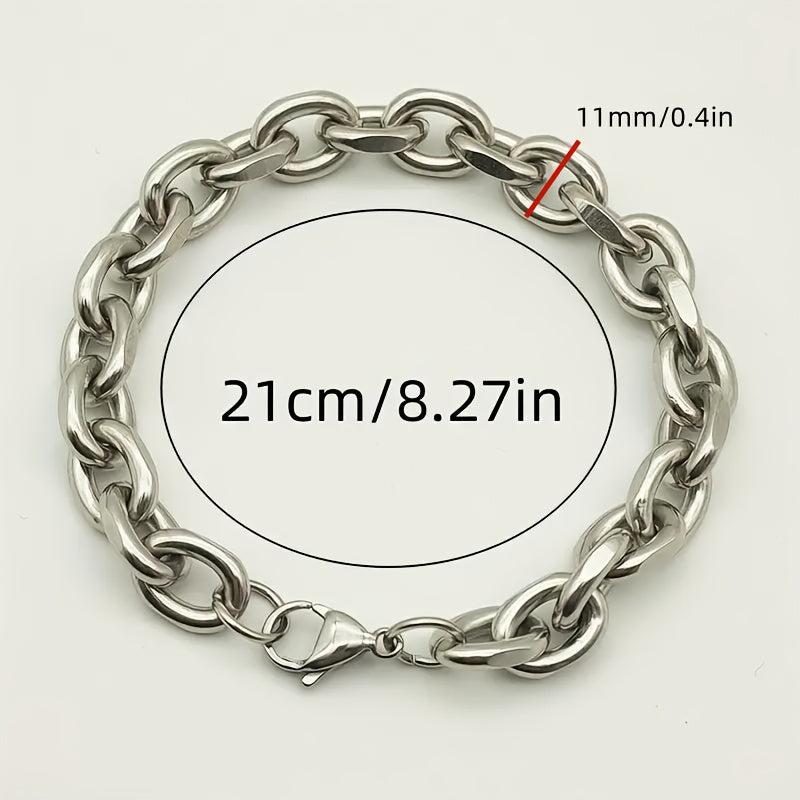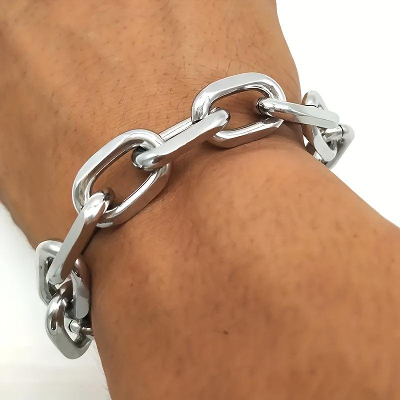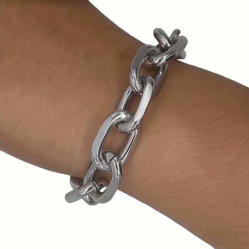 Add a touch of style to your look with this durable stainless steel chunky chain bracelet. Perfect for casual wear or parties, this sporty accessory is also ideal for outdoor activities.