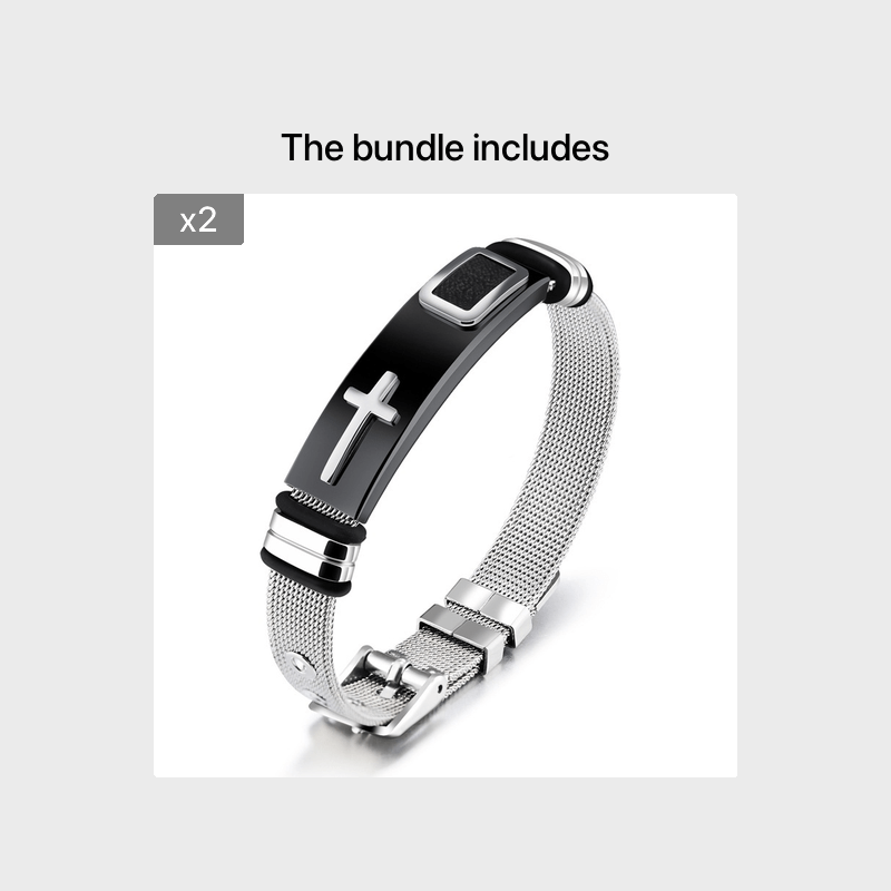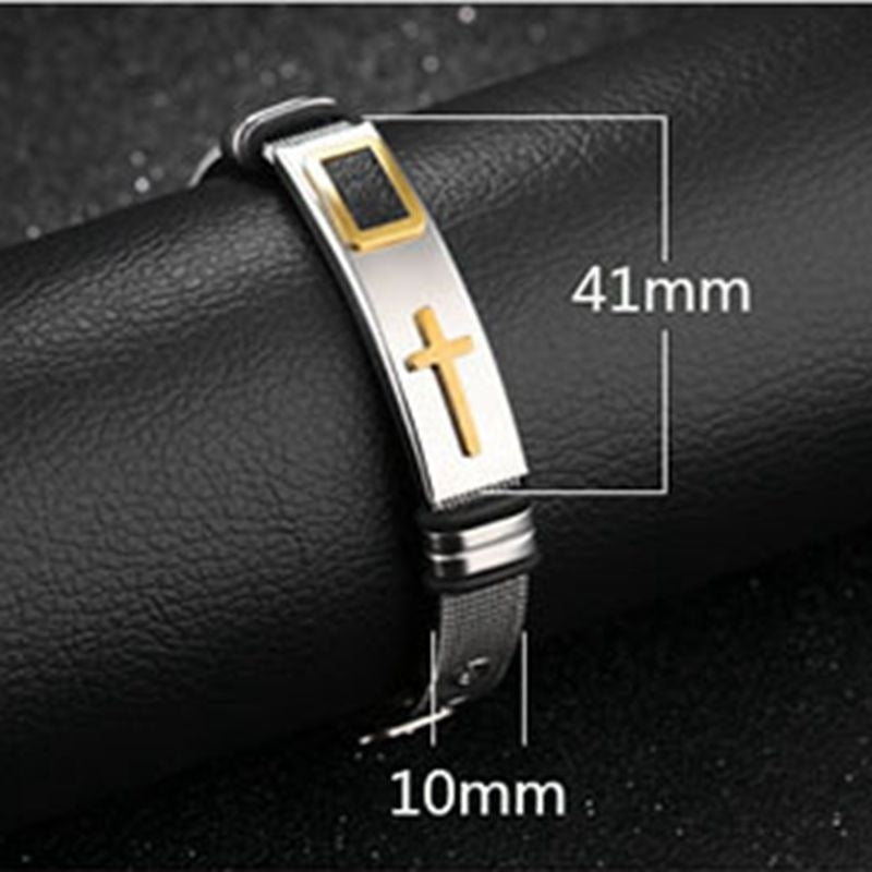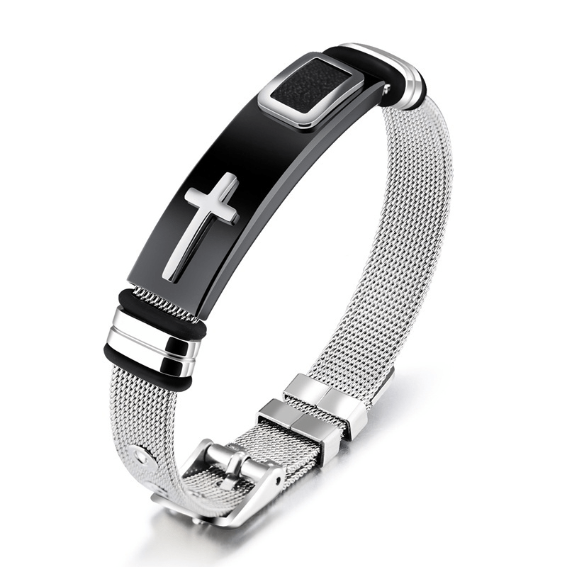 Express your personality with this adjustable stainless steel cross bracelet for men.