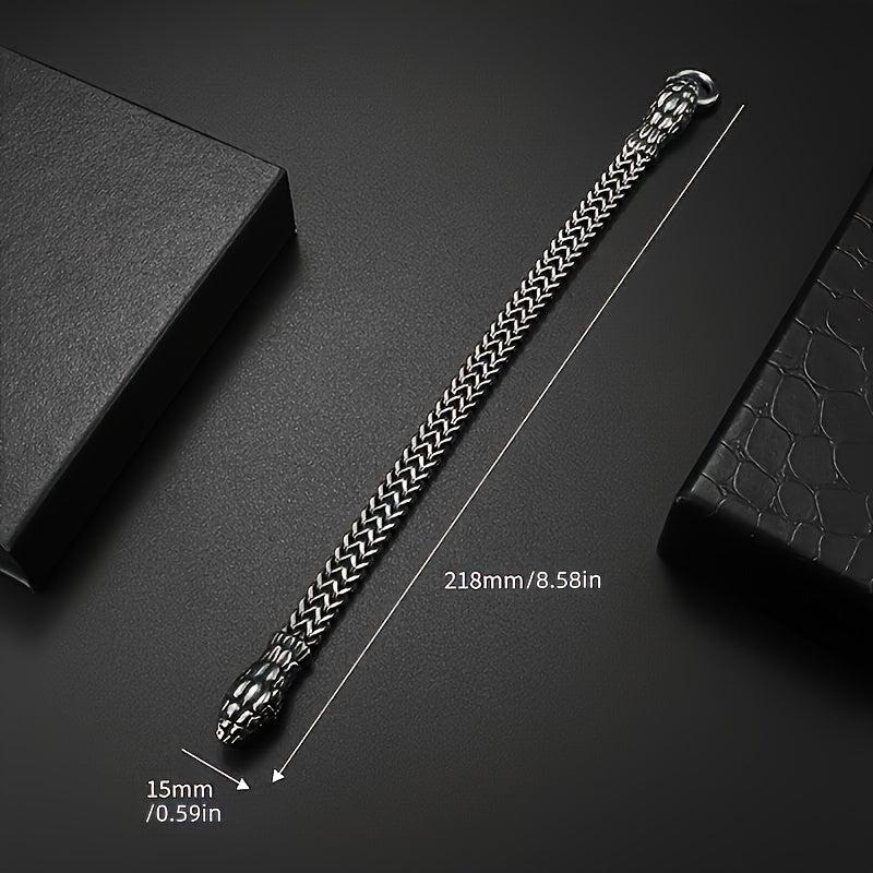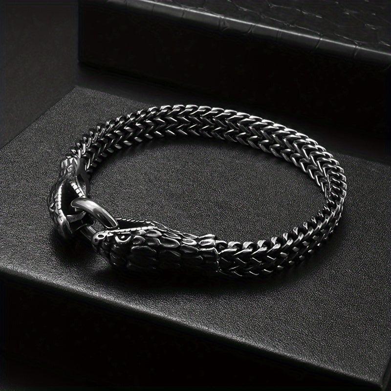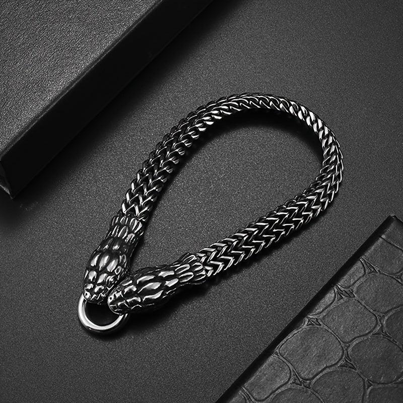 Make a bold statement with this retro punk style bracelet featuring double snake heads. Crafted from stainless steel with a metallic finish, this bracelet is perfect for parties and events.