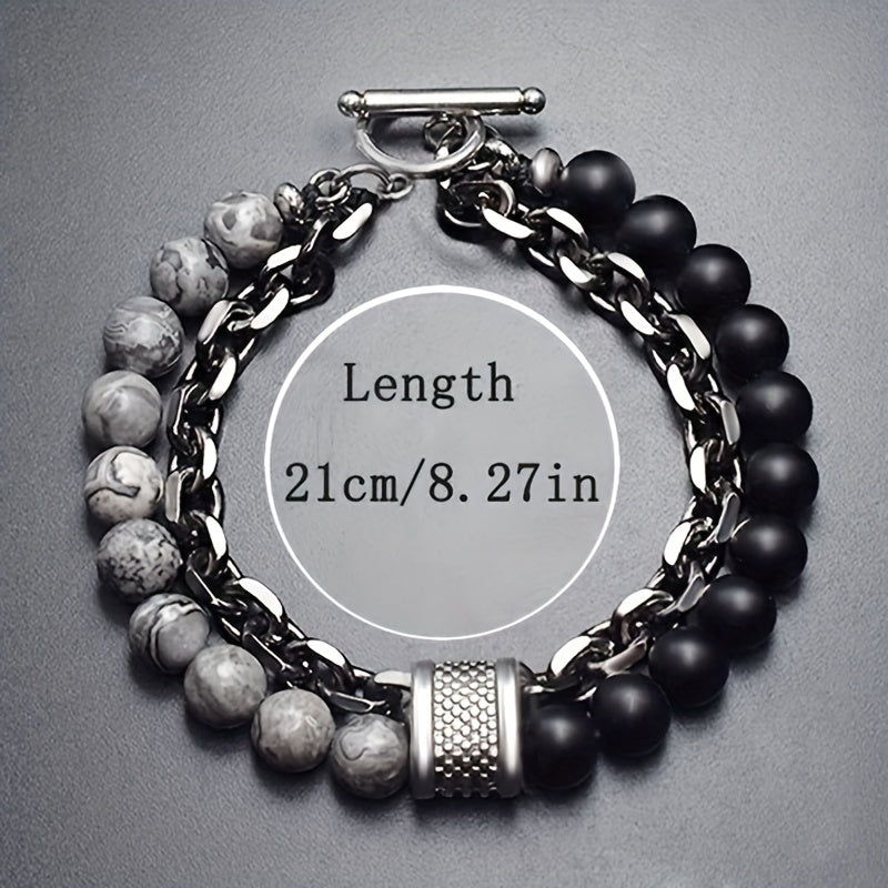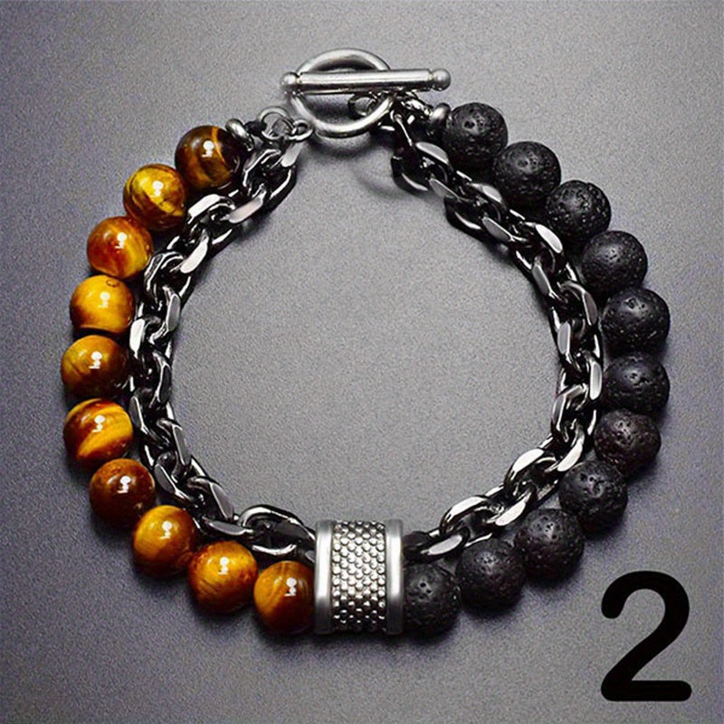 This stylish bracelet features tiger eye stone beads and durable stainless steel. It measures 8.27 inches in length, making it a great accessory for men.