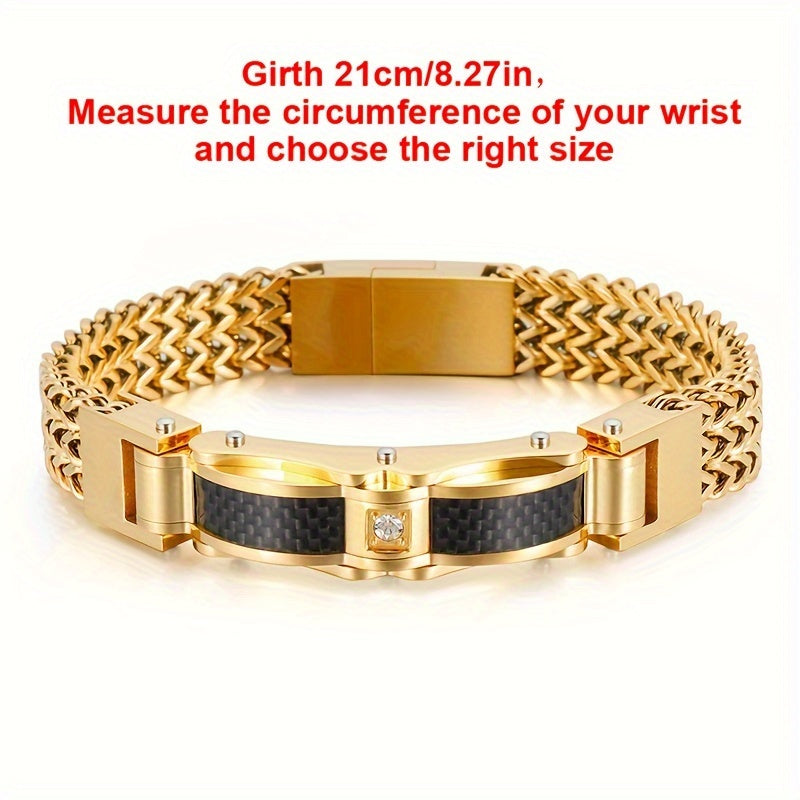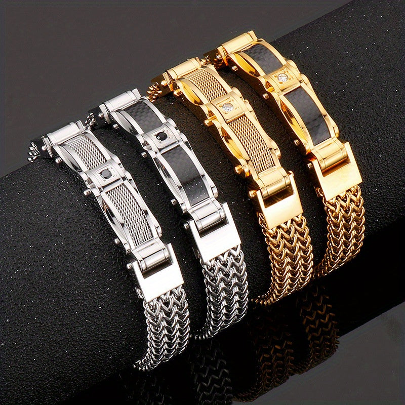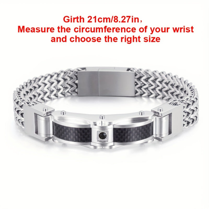 Elevate your style with this men's titanium steel bracelet featuring a square gemstone inlay and a magnetic clasp. This stylish jewelry piece is perfect for any occasion.