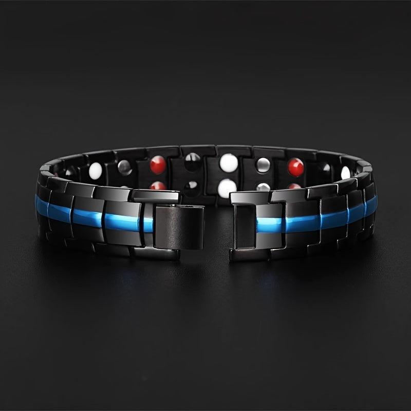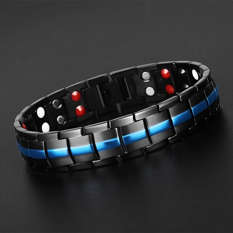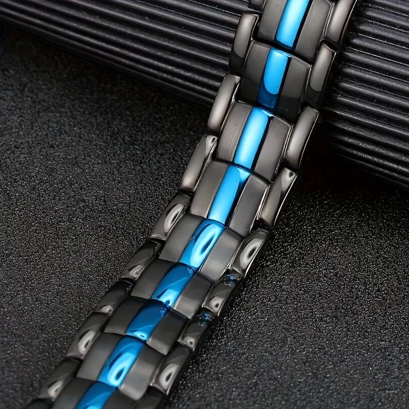 This sleek modern bracelet features dynamic accents, making it an ideal gift for Christmas or Father's Day. The polished finish adds a touch of elegance to any outfit.