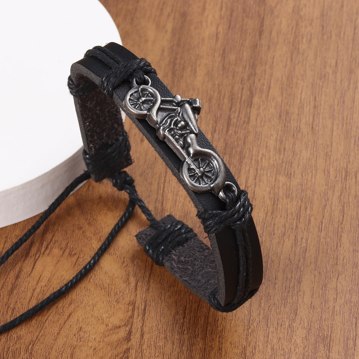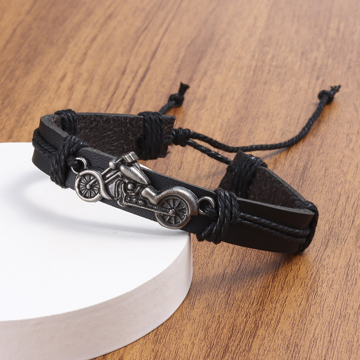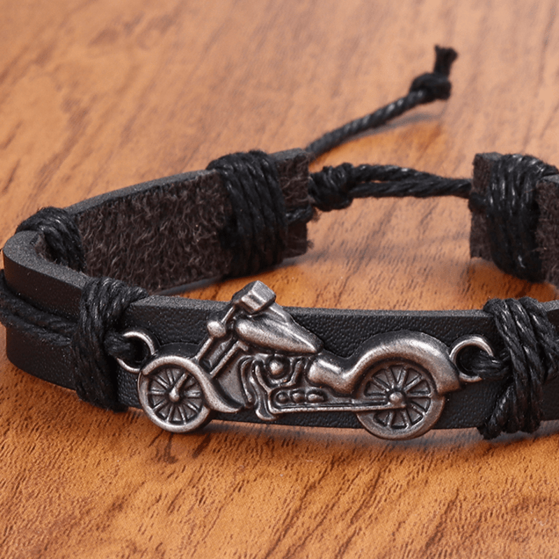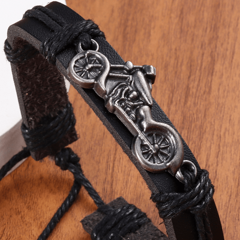 Add a touch of vintage style to your look with this leather woven motorcycle bracelet. It's the perfect accessory for motorcycle enthusiasts.