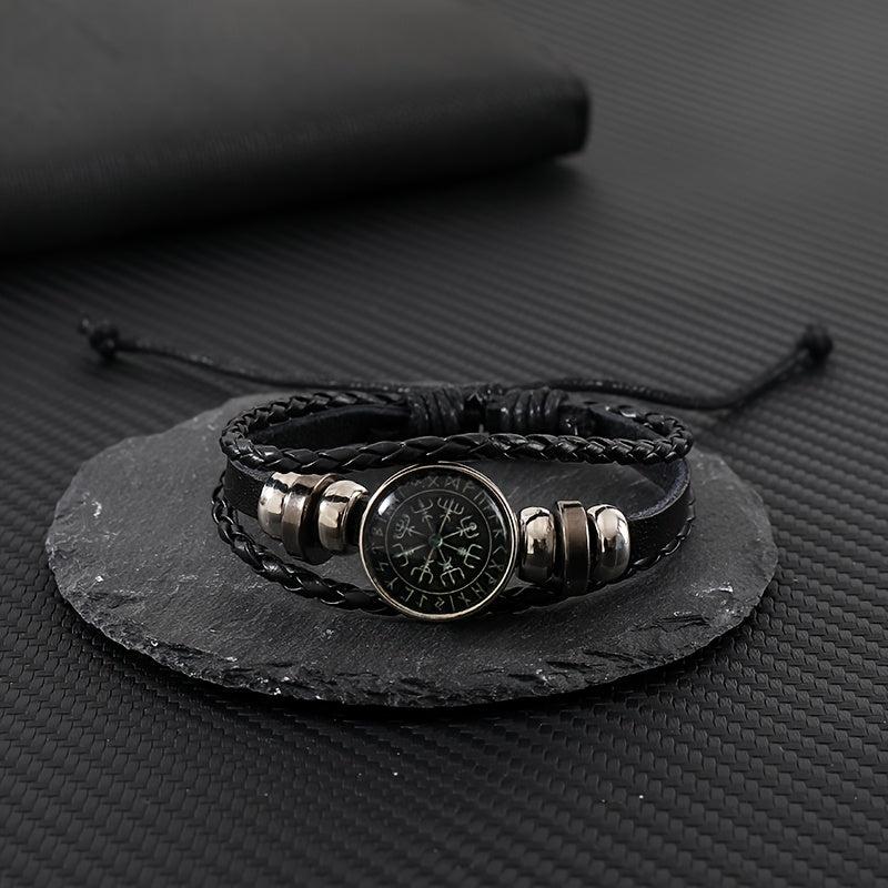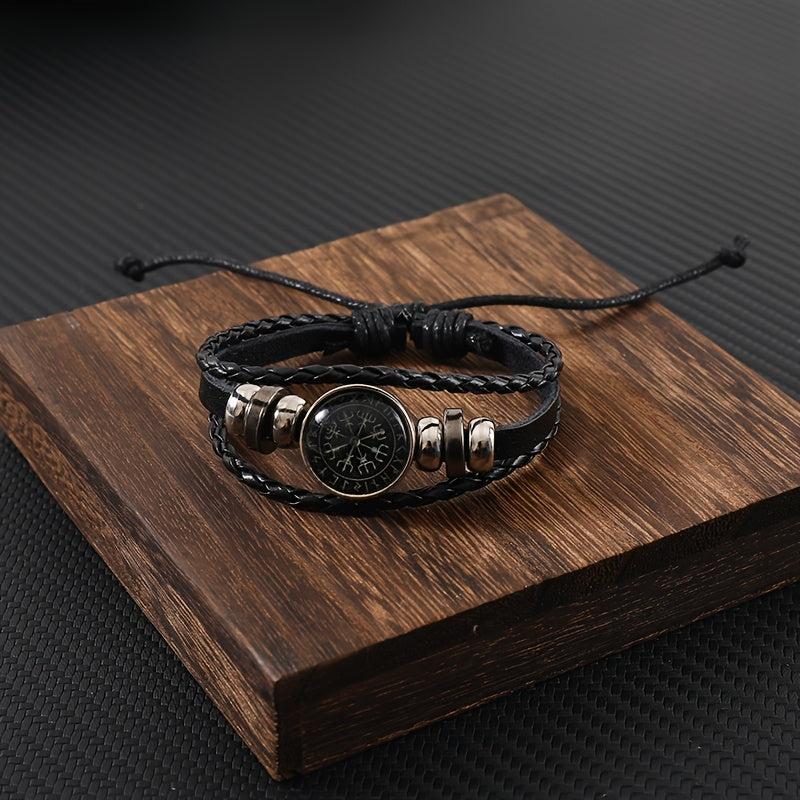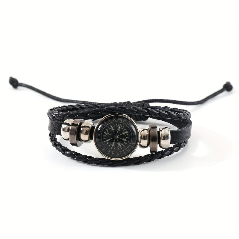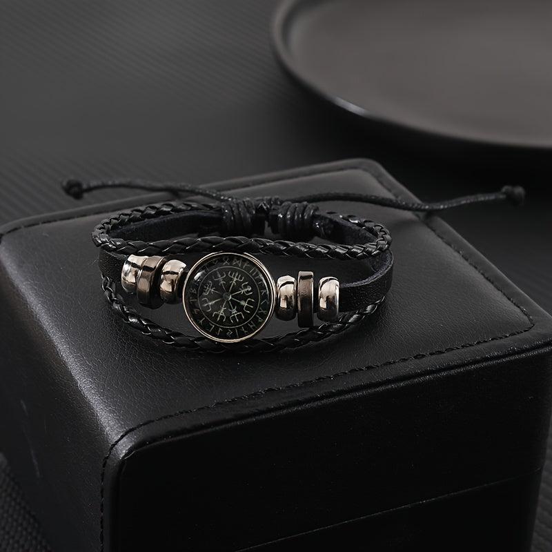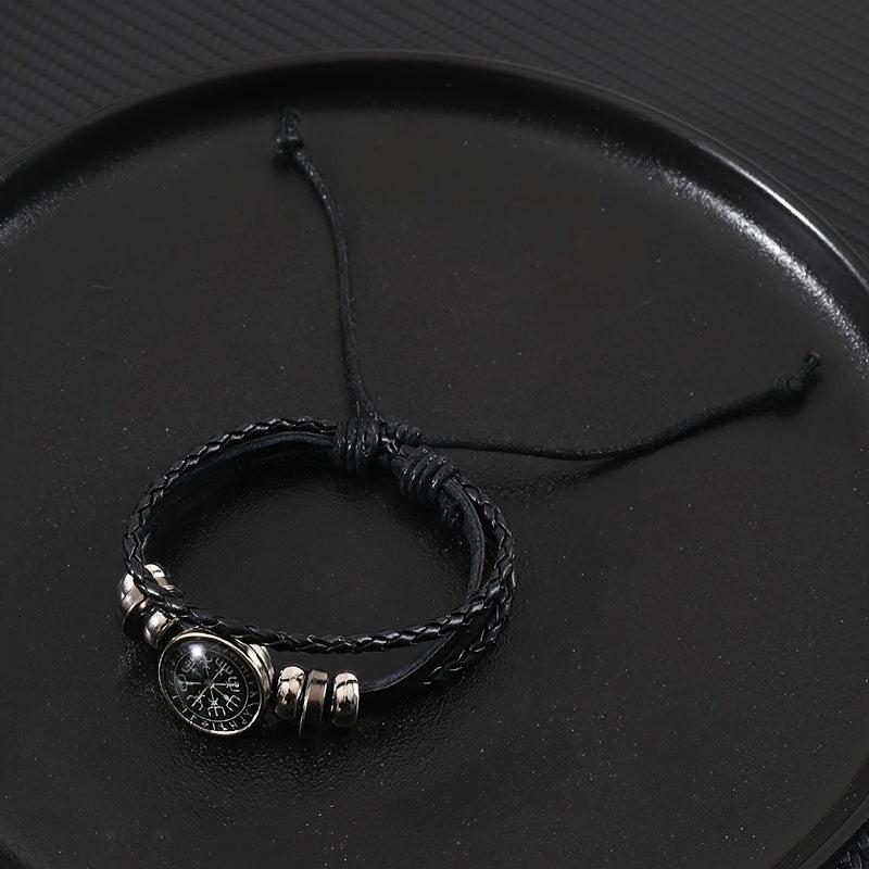 Add a touch of punk style to your outfit with this vintage-inspired beaded bracelet. Featuring a compass pattern and faux leather accents, this adjustable brown wristband is a unique accessory for men.