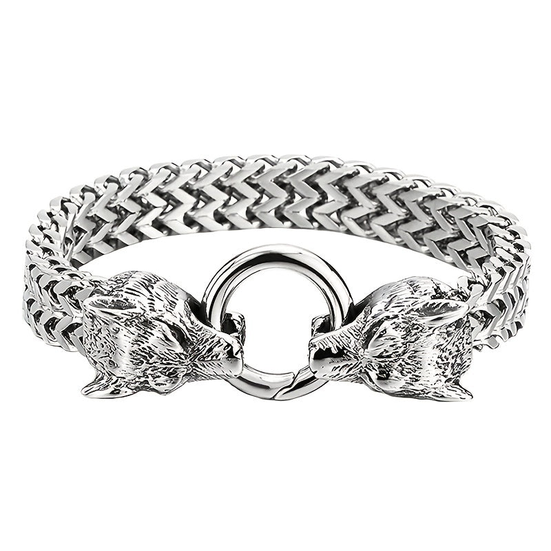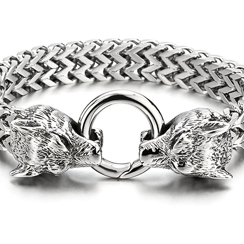 Embrace retro personality with this hip pop locomotive guy stainless steel bracelet featuring a wolf head design. Perfect for a viking-inspired look.