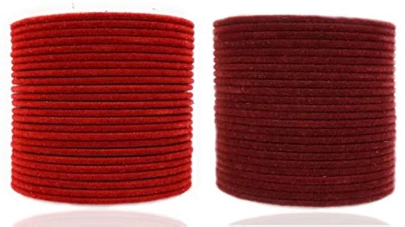 This stylish bangle set features a mix of fabric, metal, and enamel materials in a maroon color.
