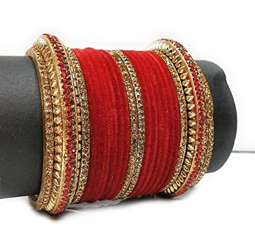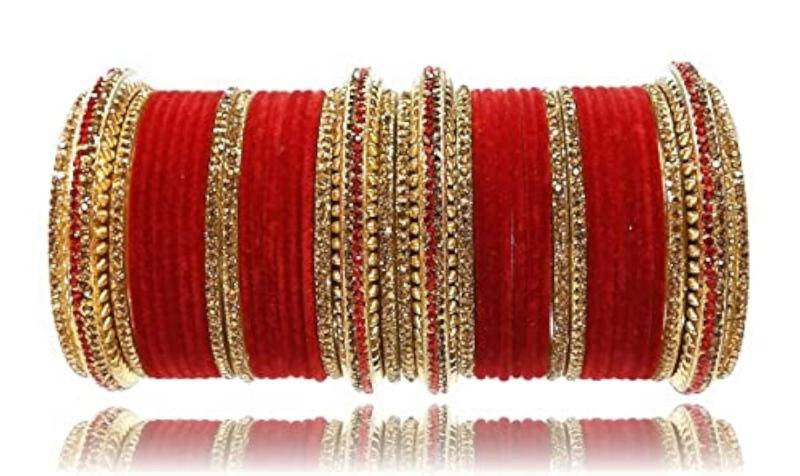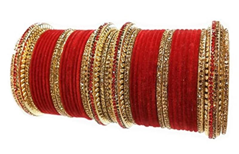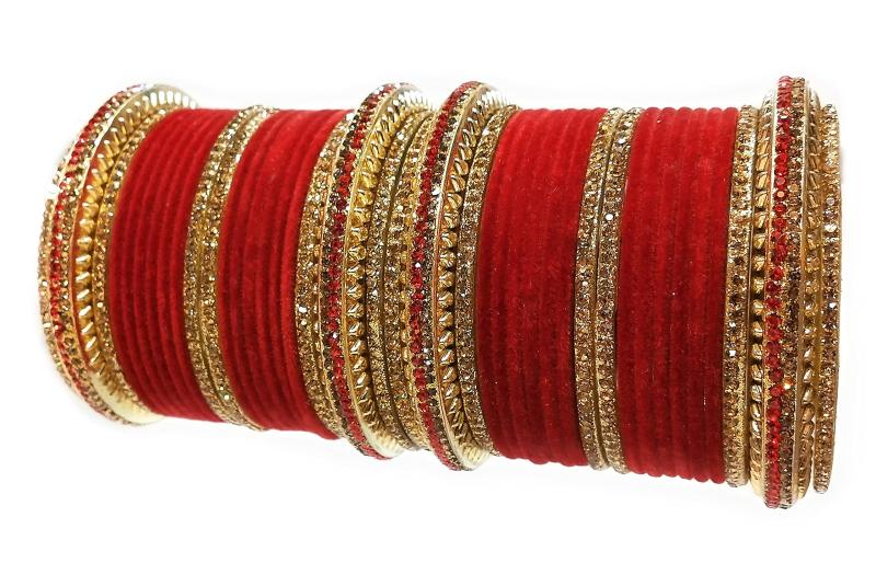 Elegant bridal bangles set featuring full zircon stones on velvet material. Perfect for weddings.