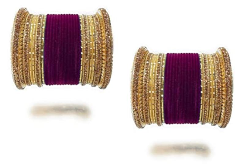 Elegant metal bridal bangles set embellished with zircon stones. Perfect for weddings or special occasions.