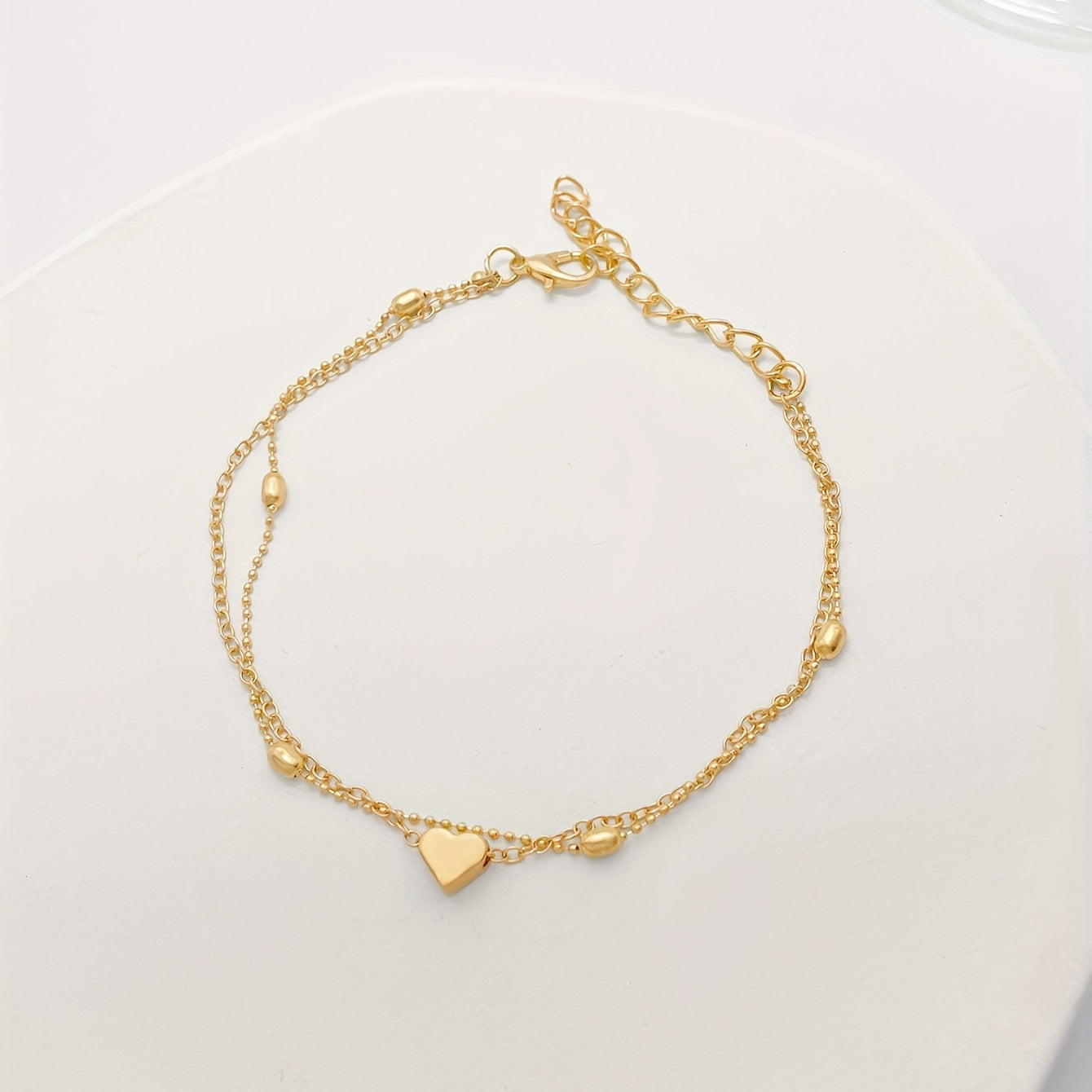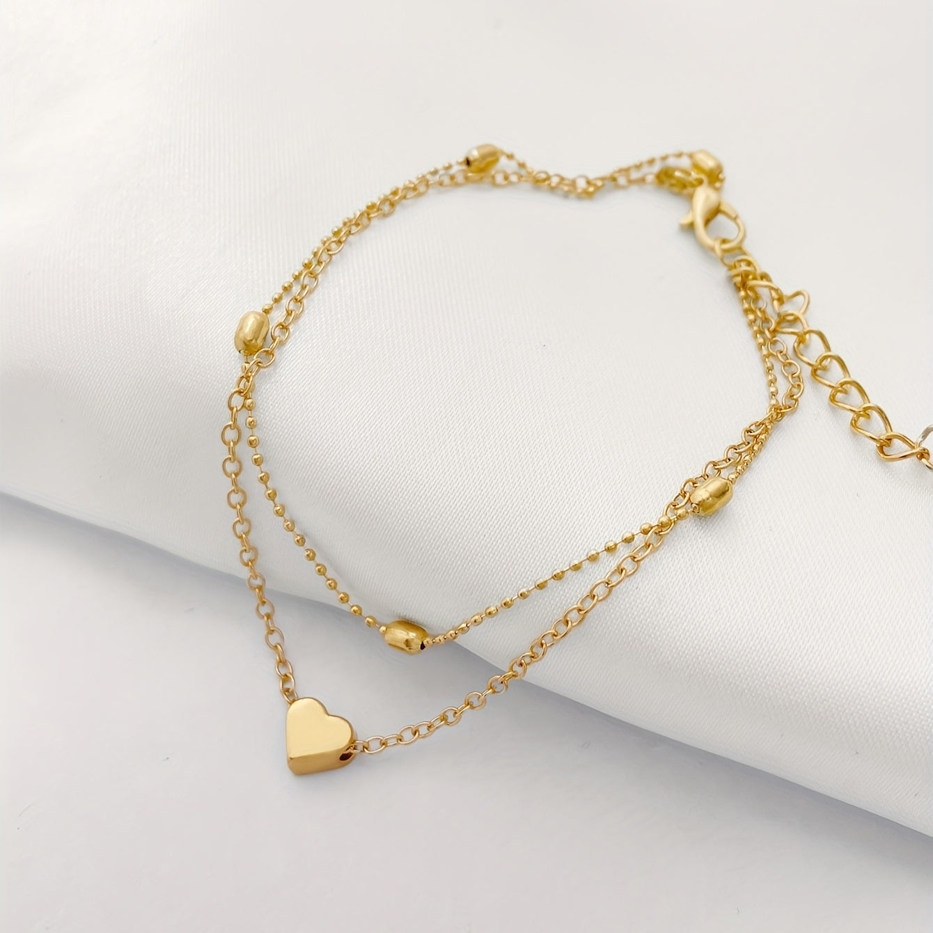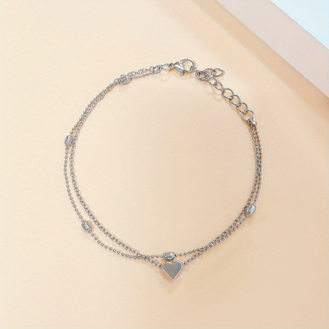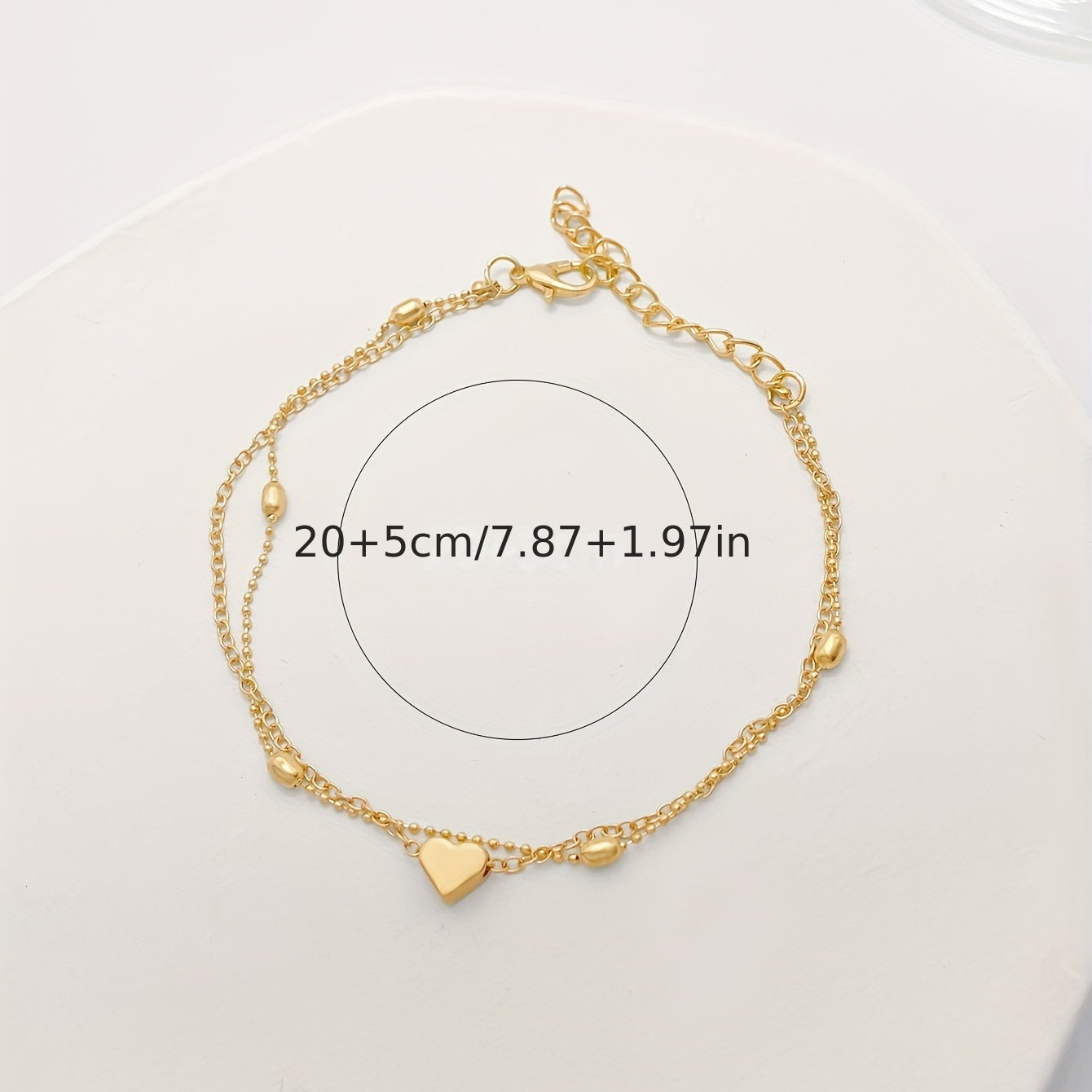Add a touch of charm to your ankle with this elegant double layer anklet featuring mini love heart charms. Perfect for everyday wear or special occasions.