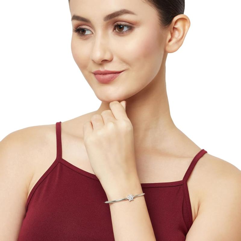 Enhance your style with this elegant rhodium finish bracelet that exudes sophistication.