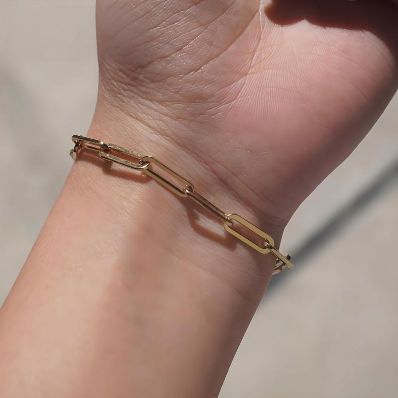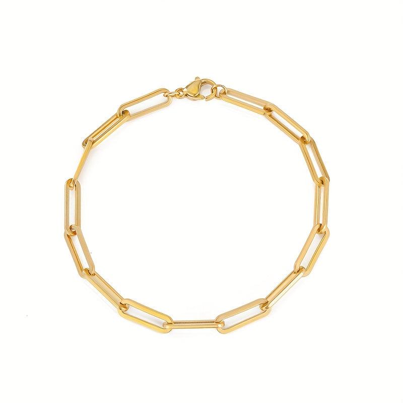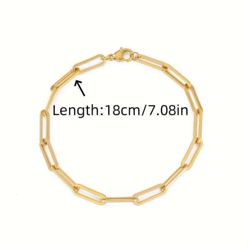 Add a touch of elegance to your look with this minimalist chain bracelet. Made from durable stainless steel and plated with 14K gold, this bracelet is perfect for everyday wear or special occasions.
