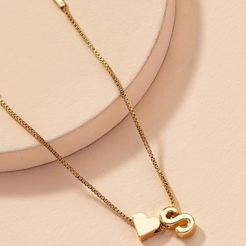 This European and American style bracelet features a minimalist design with a three-dimensional heart shaped pendant and 26 English letters. It adds a touch of personality to your outfit with its electroplated finish.