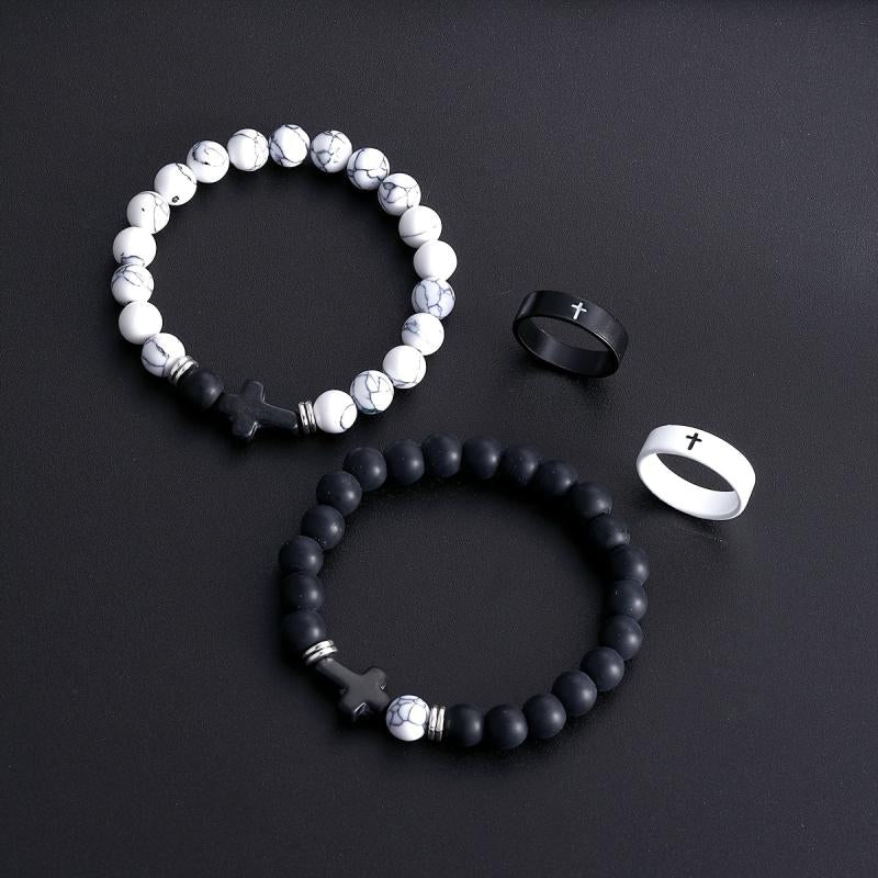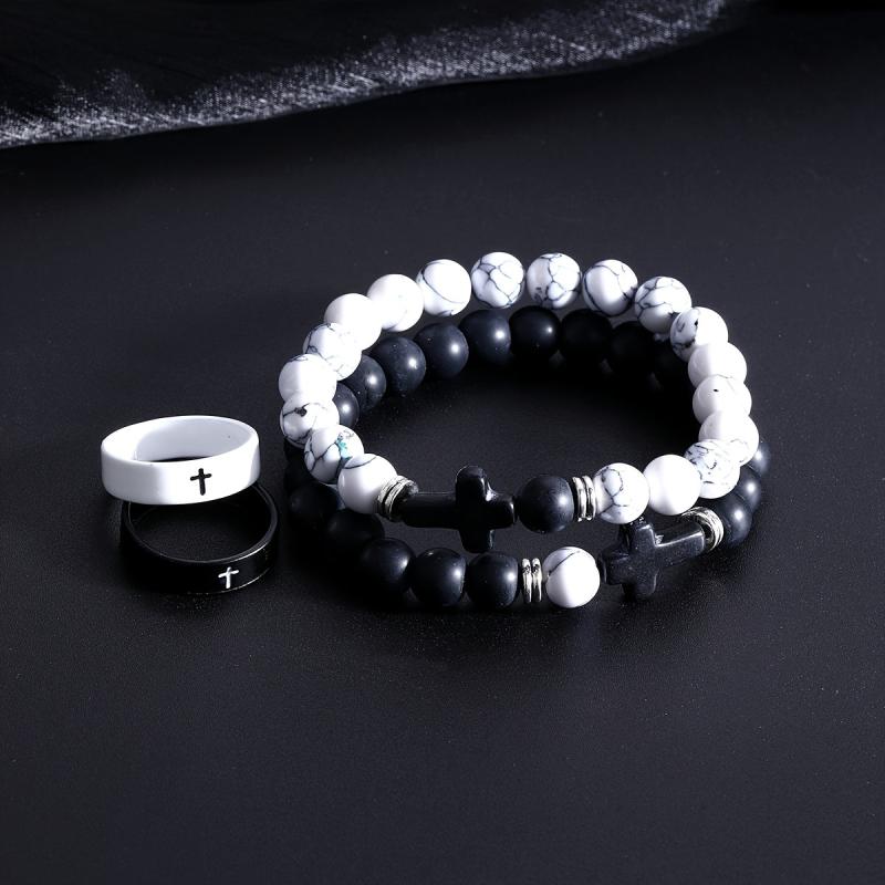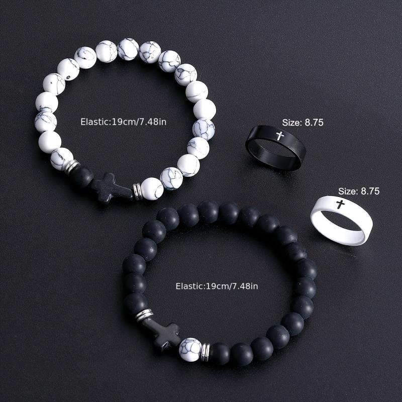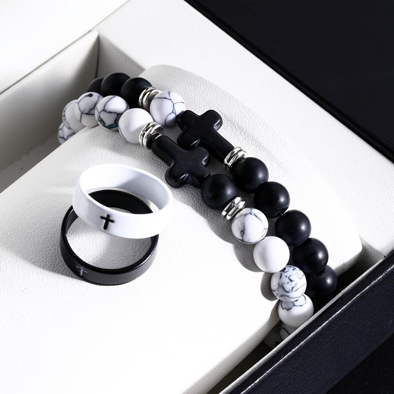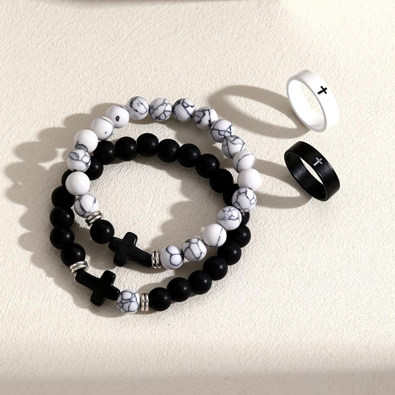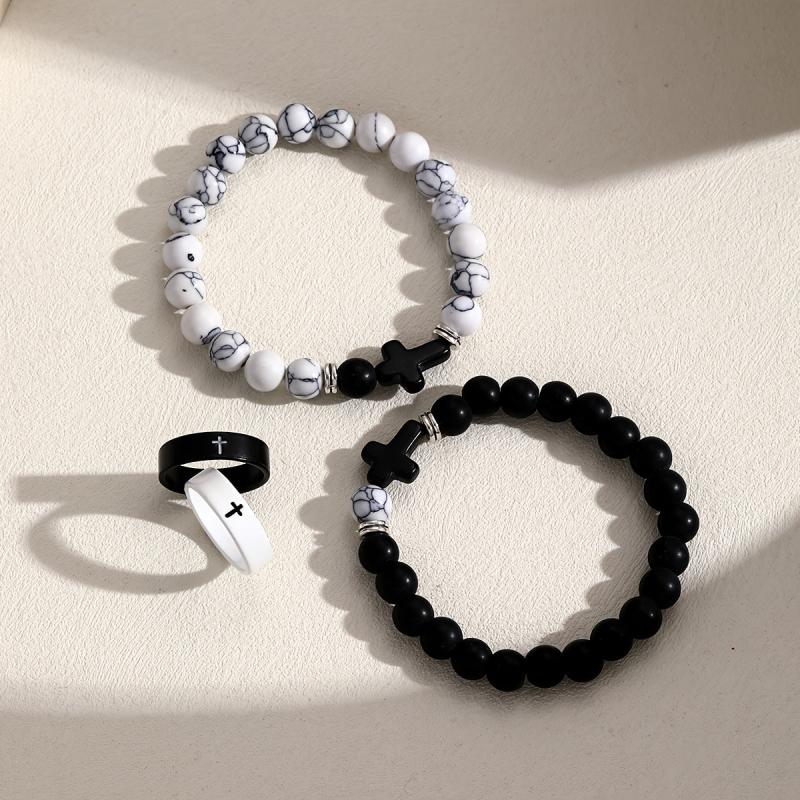 This 4pcs set is perfect for vacation and daily wear. Ideal as a Valentine's gift, these stylish rings and bracelets feature a minimalist design.