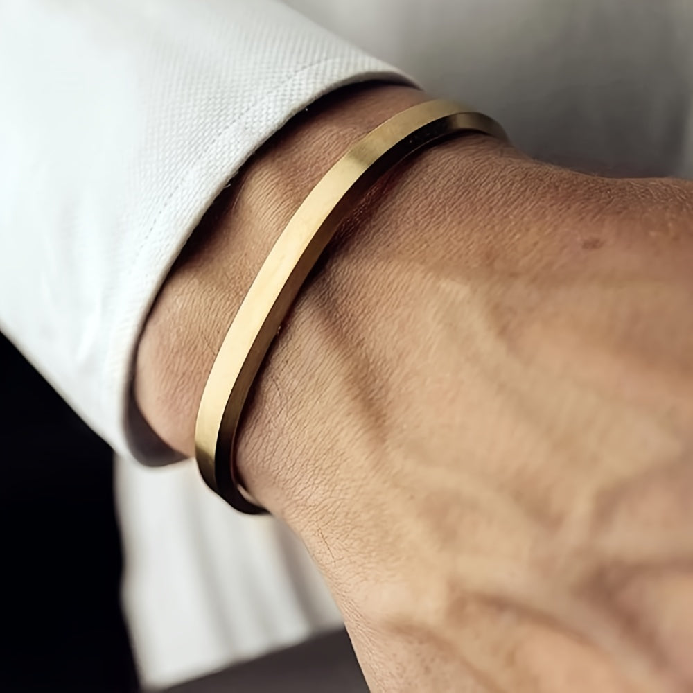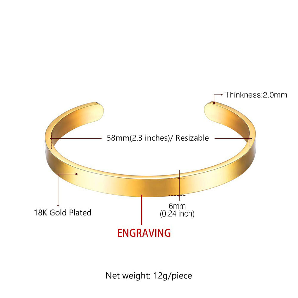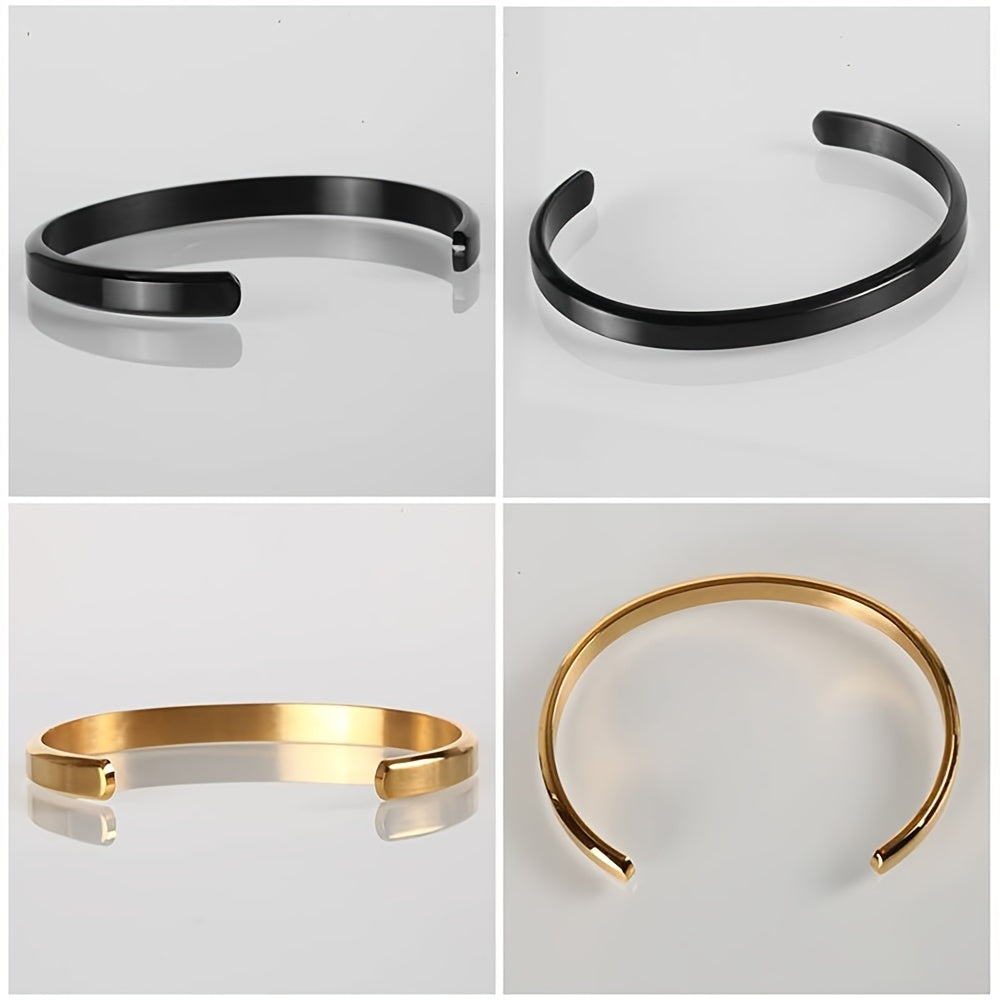 This open bangle cuff bracelet is crafted from high-quality stainless steel, offering a simple and sleek design that adds an elegant touch to any outfit.