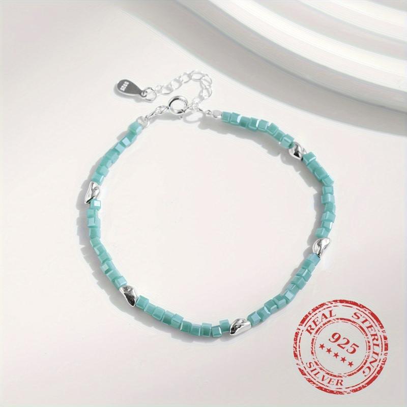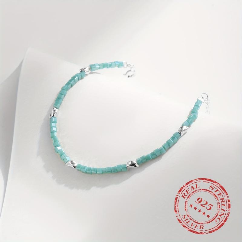 This sterling silver charm bracelet features green crystal and silver accents, making it perfect for everyday wear. The sleek design adds a touch of style to any outfit.