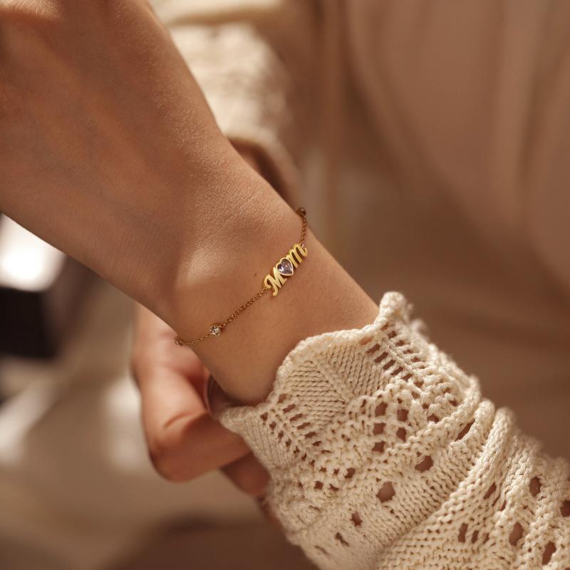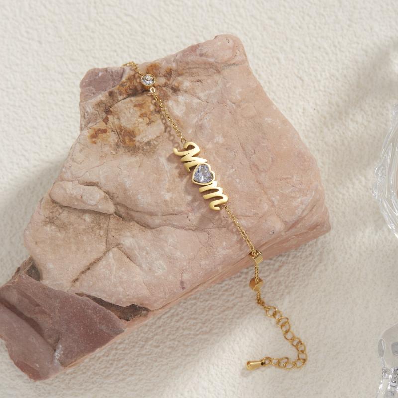 Elevate your style with this golden tone bracelet featuring a heart charm and gemstone. Perfect for casual attire, vacations, and as a thoughtful Mother's gift.