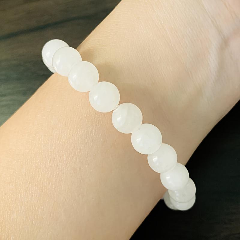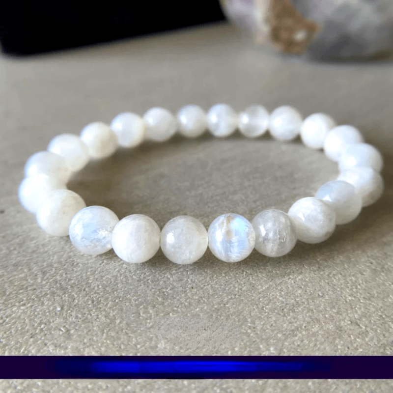 This minimalist beaded bracelet features natural moonstones that exude an iridescent feel, perfect for adding a touch of elegance to your winter and year-round casual attire or special occasions.