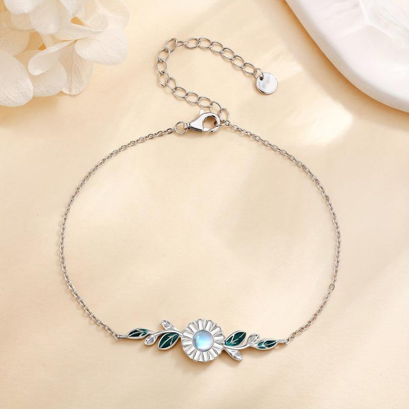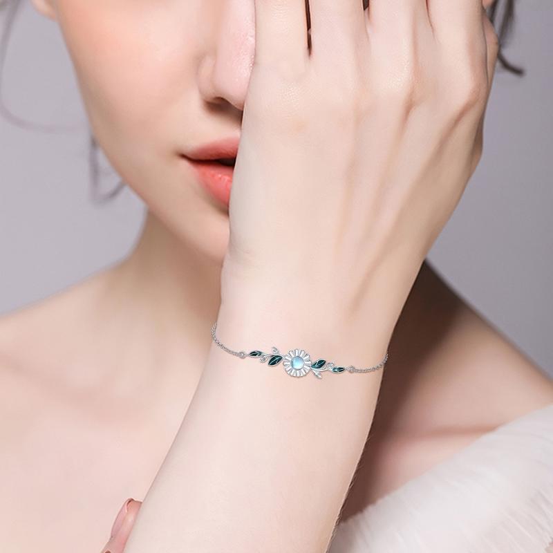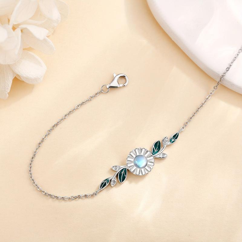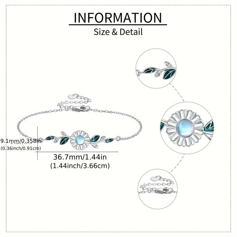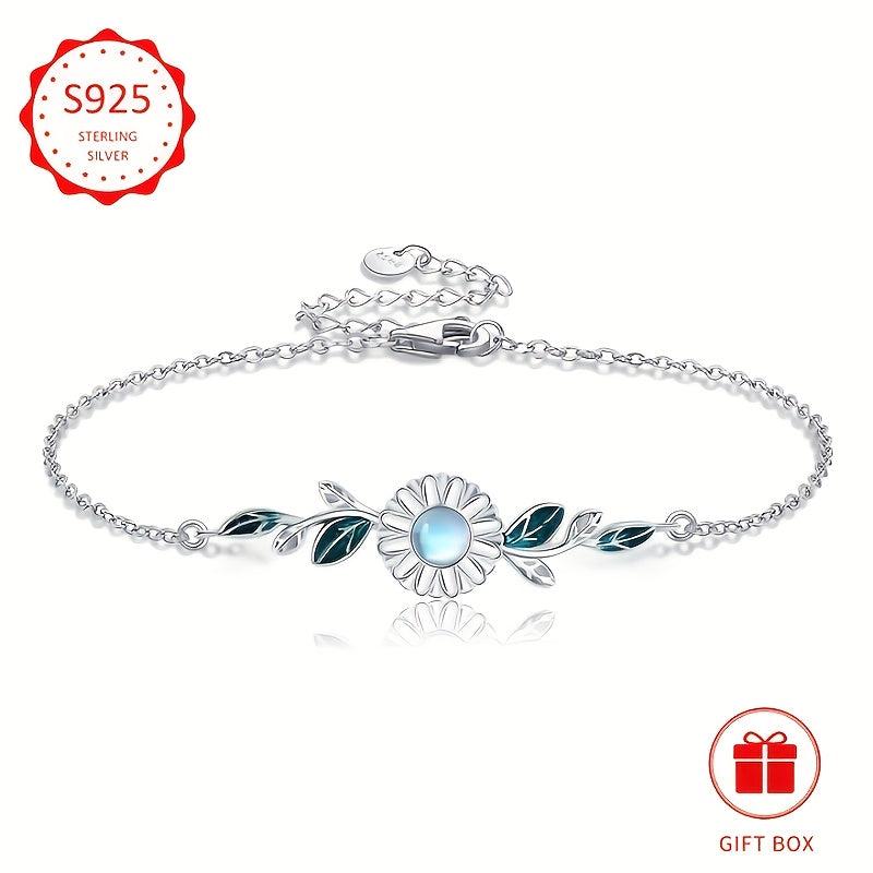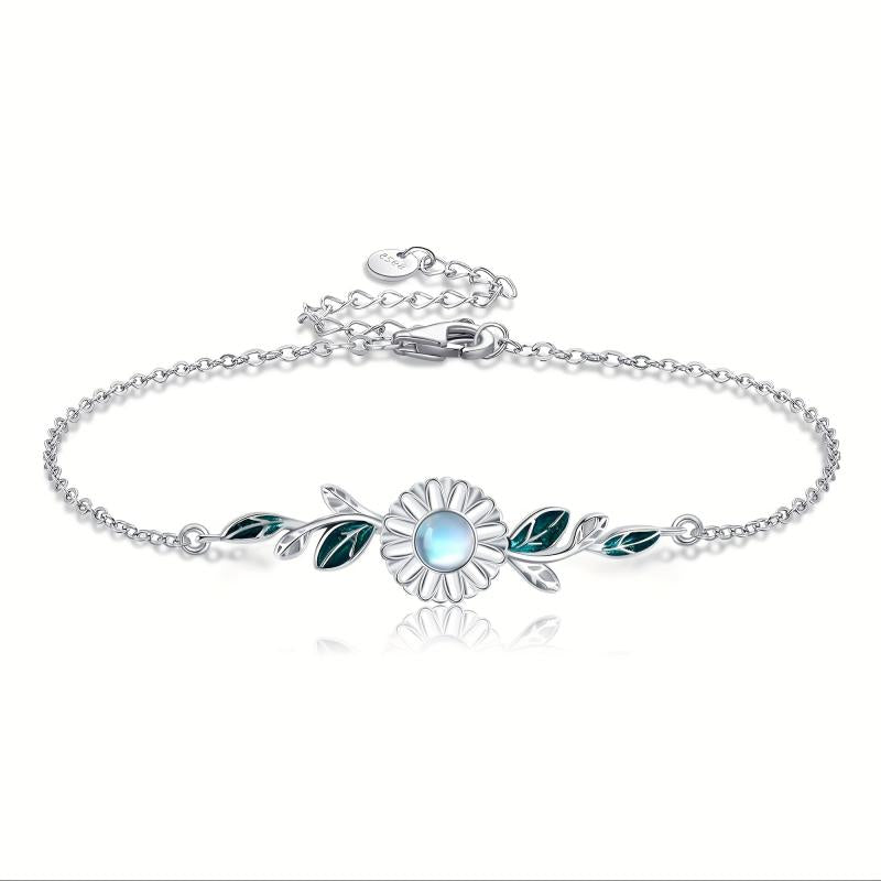 This stunning daisy bracelet features moonstone gems set in 925 sterling silver. A perfect gift for women who love floral jewelry.