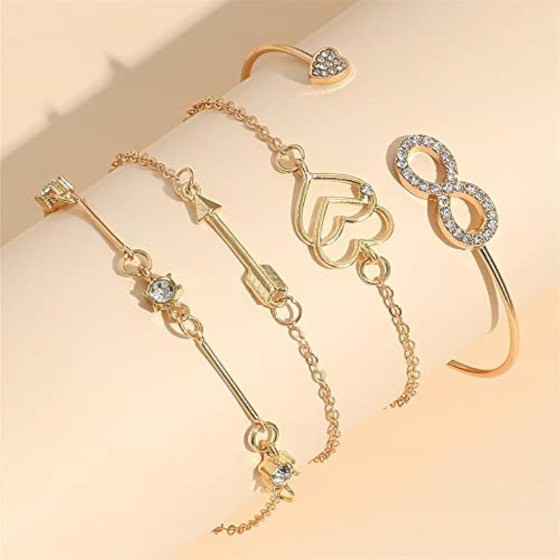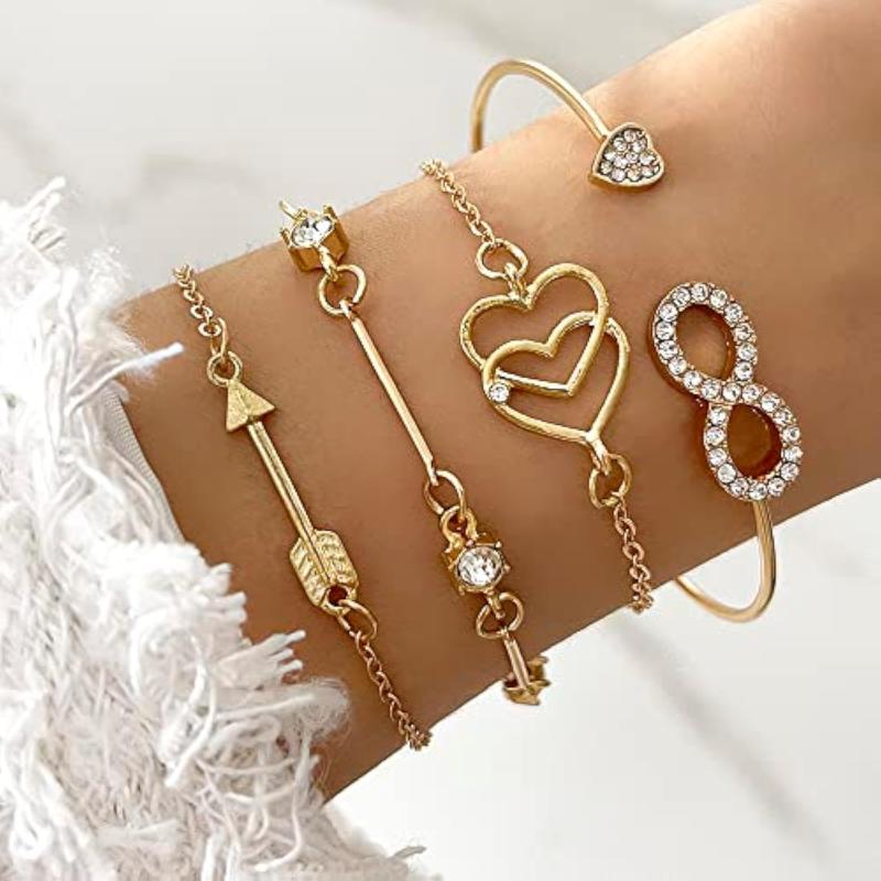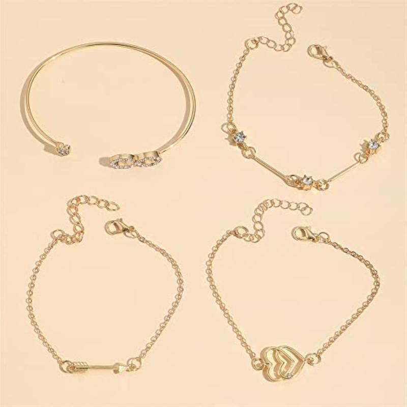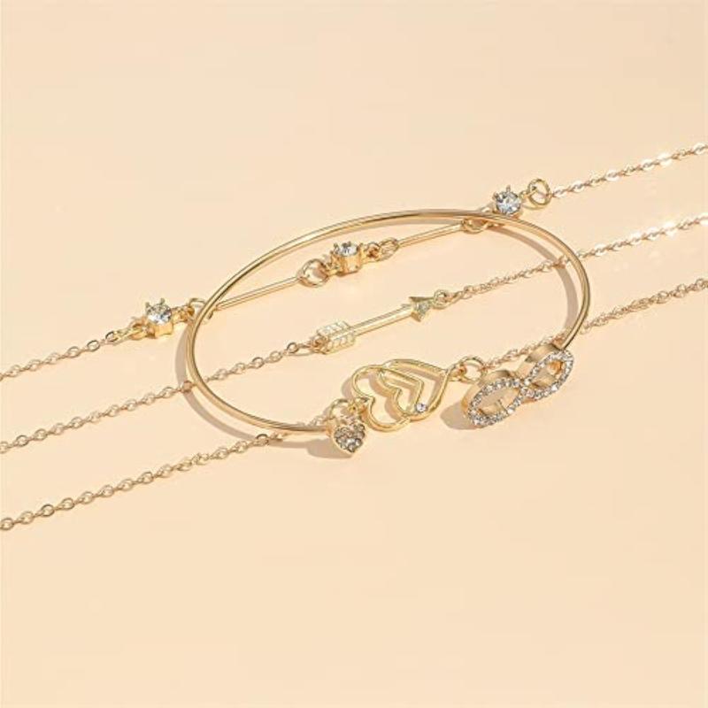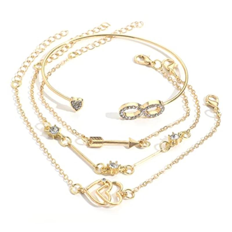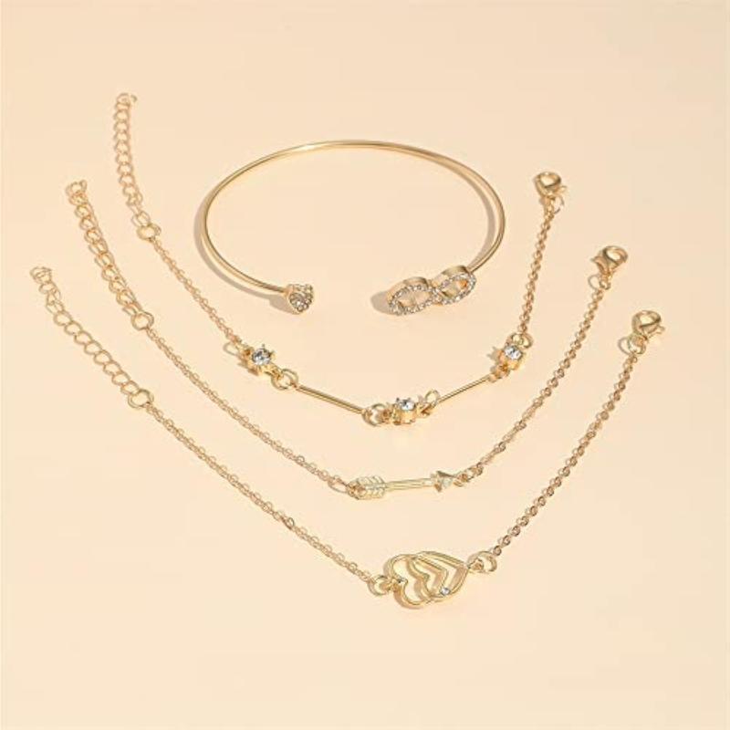 Stay on-trend with this chic 4pcs bracelet set featuring multilayer design with heart and infinity charms. Perfect for adding a touch of style to any outfit.