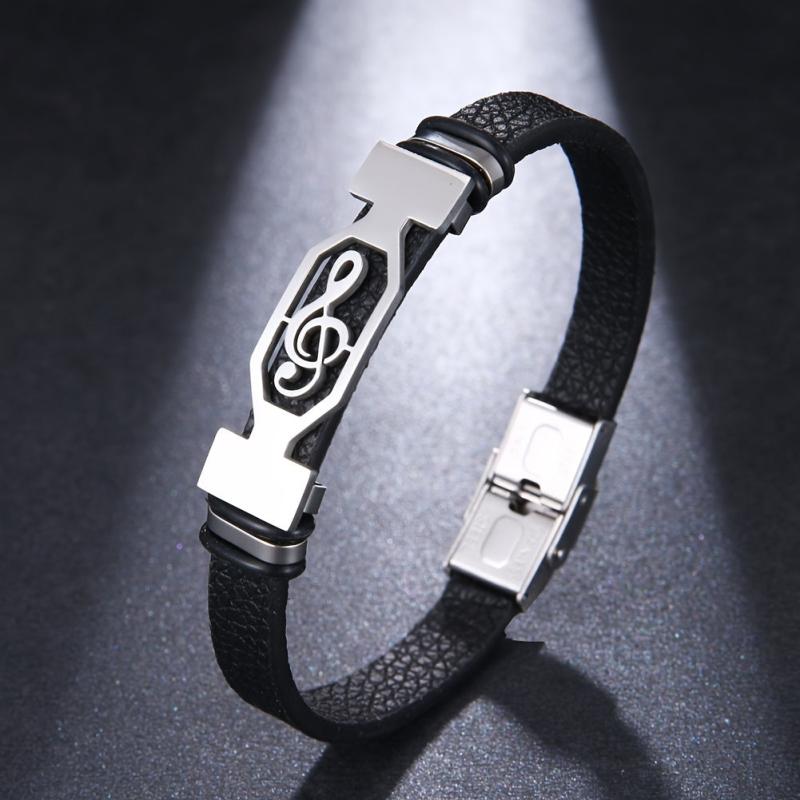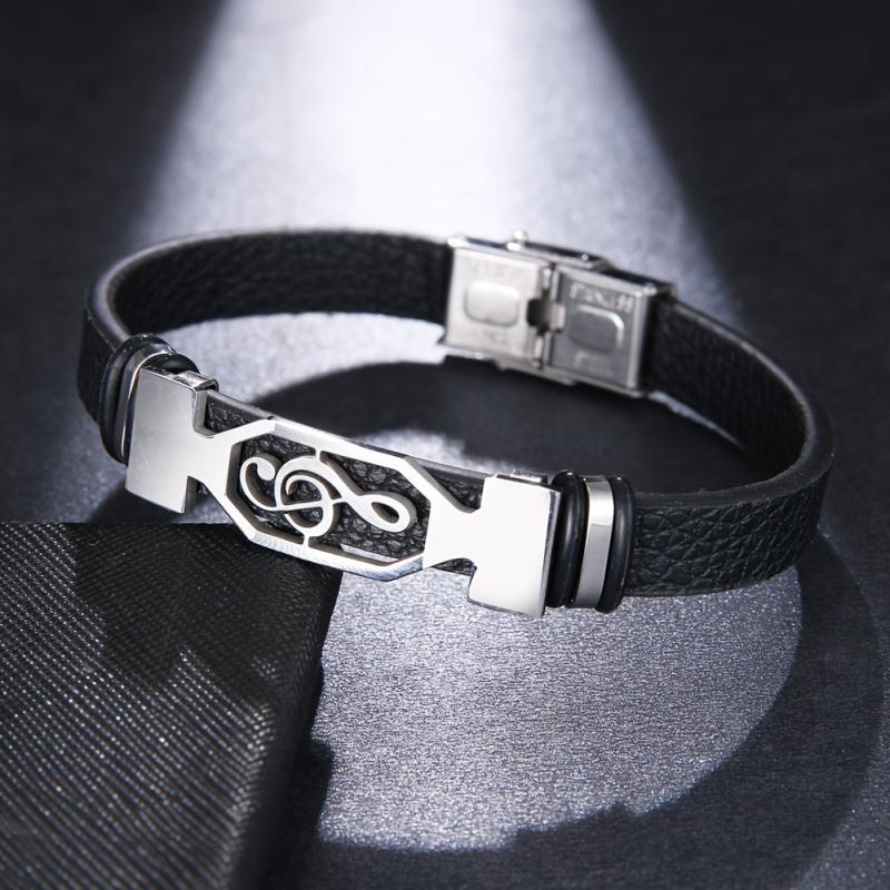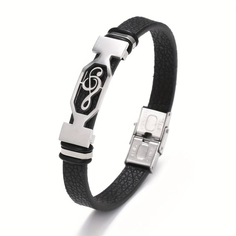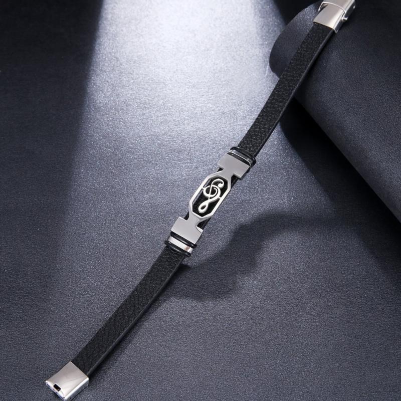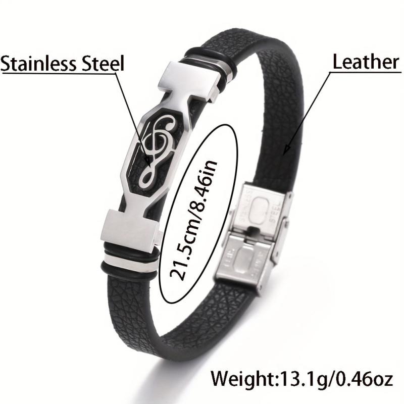 This sleek cuff bracelet features a music symbol design, crafted from durable stainless steel for a modern look that music enthusiasts will love.