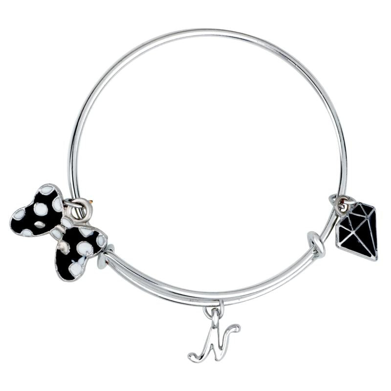 Adorn your wrist with this delightful bracelet featuring N letter and diamond & boo shaped charms. Made with rhodium plated enamel work for a stylish look.