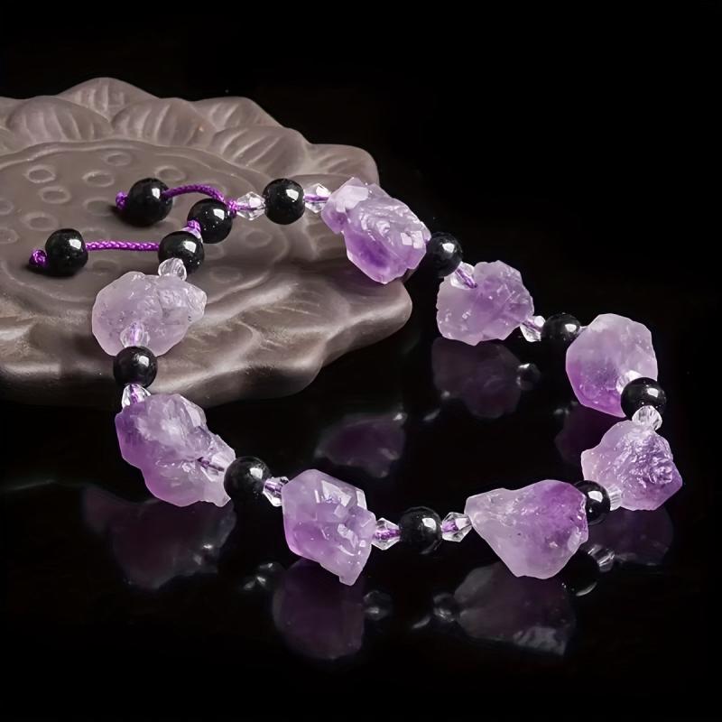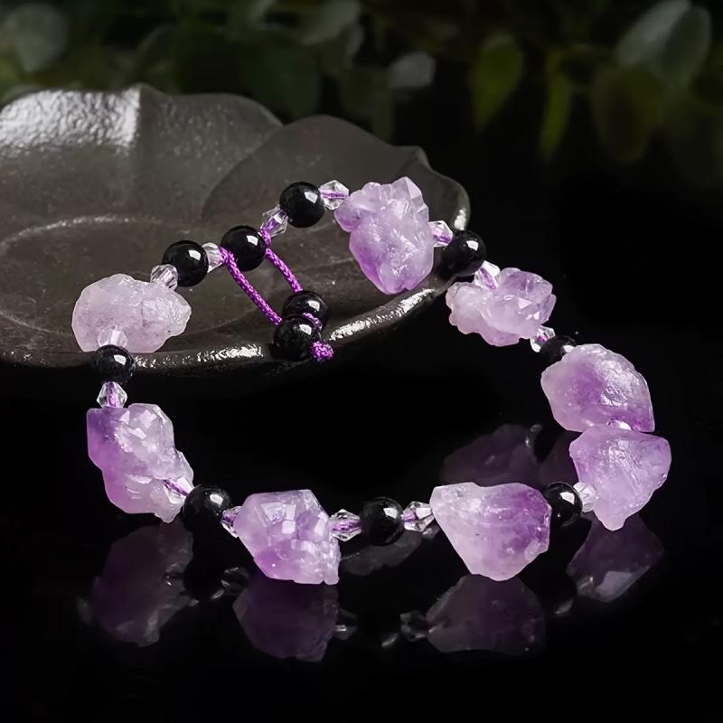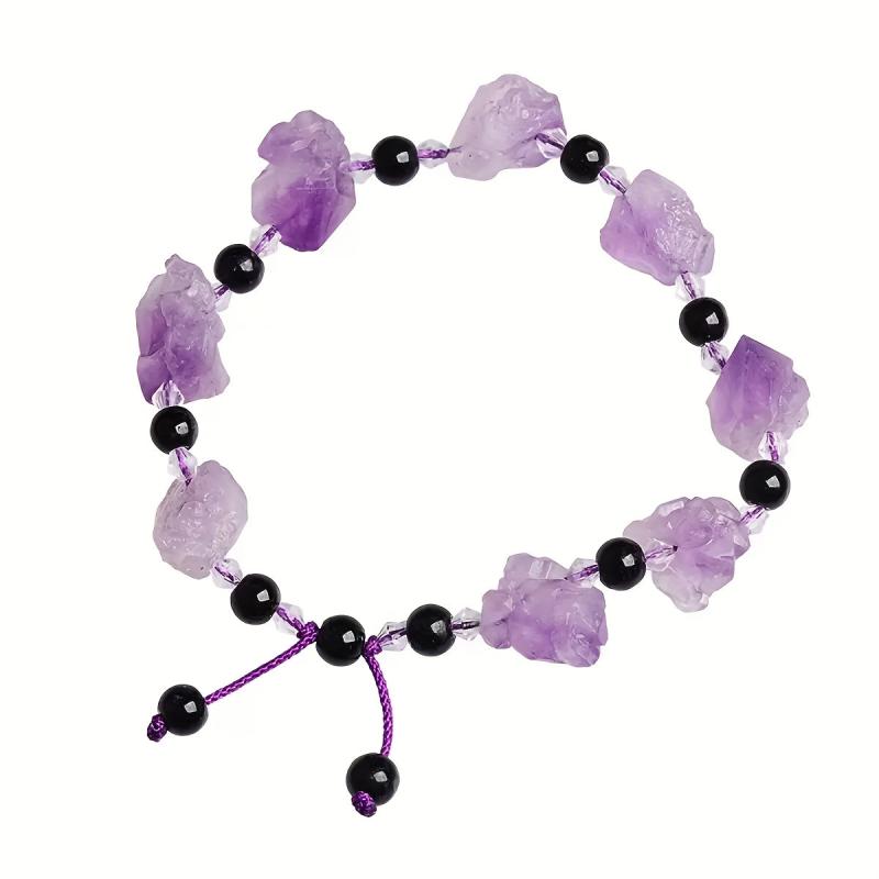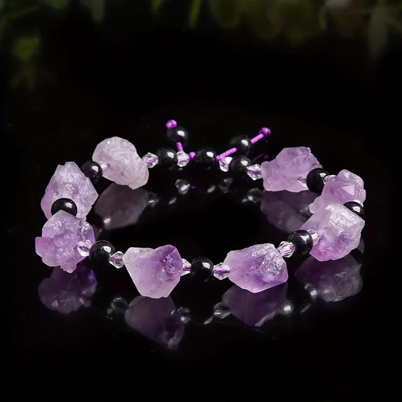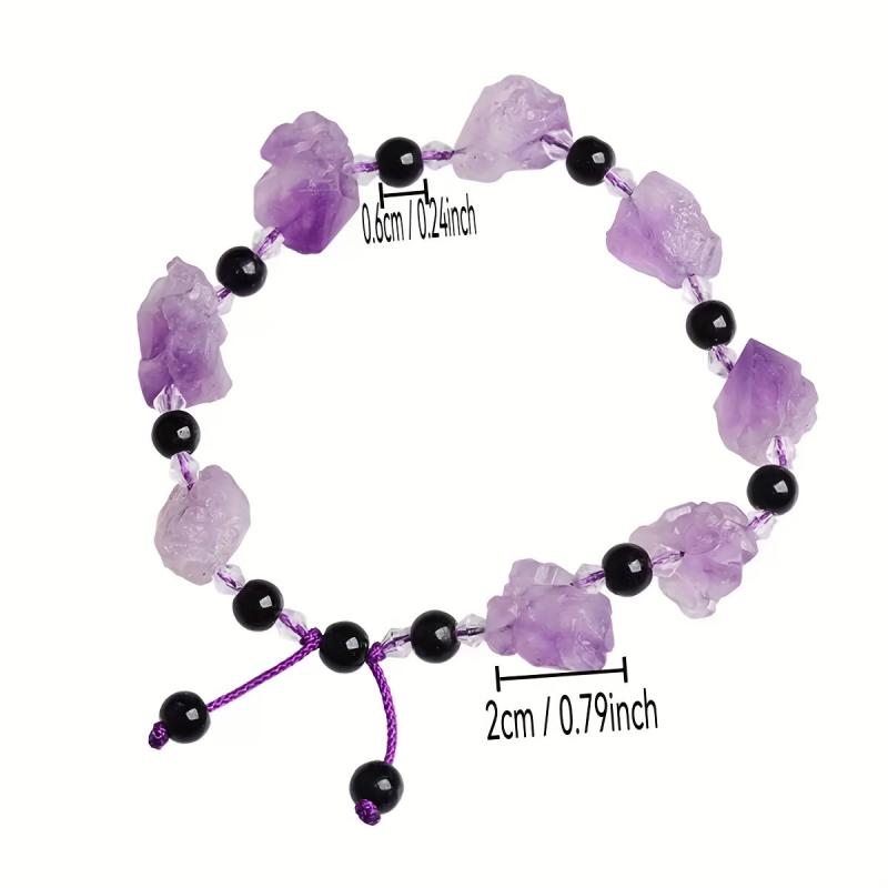 This unique bracelet features natural amethyst stones in an irregular raw form, perfect for daily wear or gifting. Suitable for both men and women.