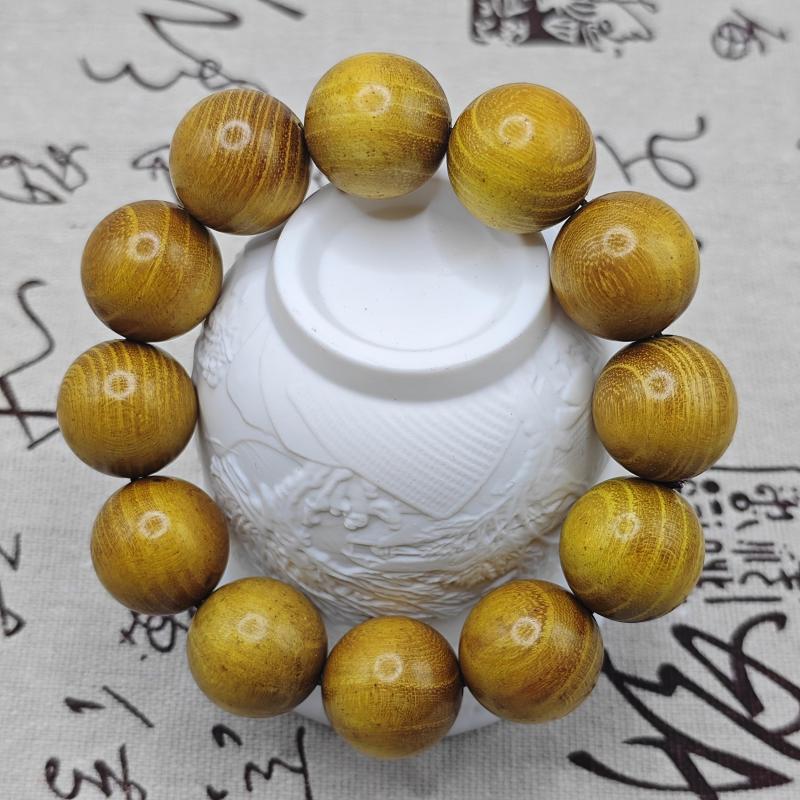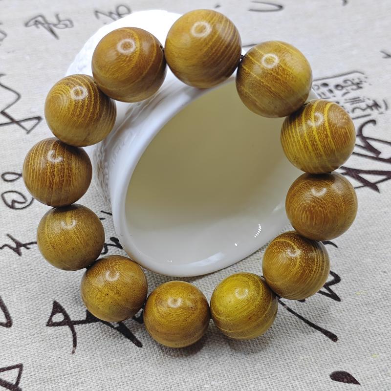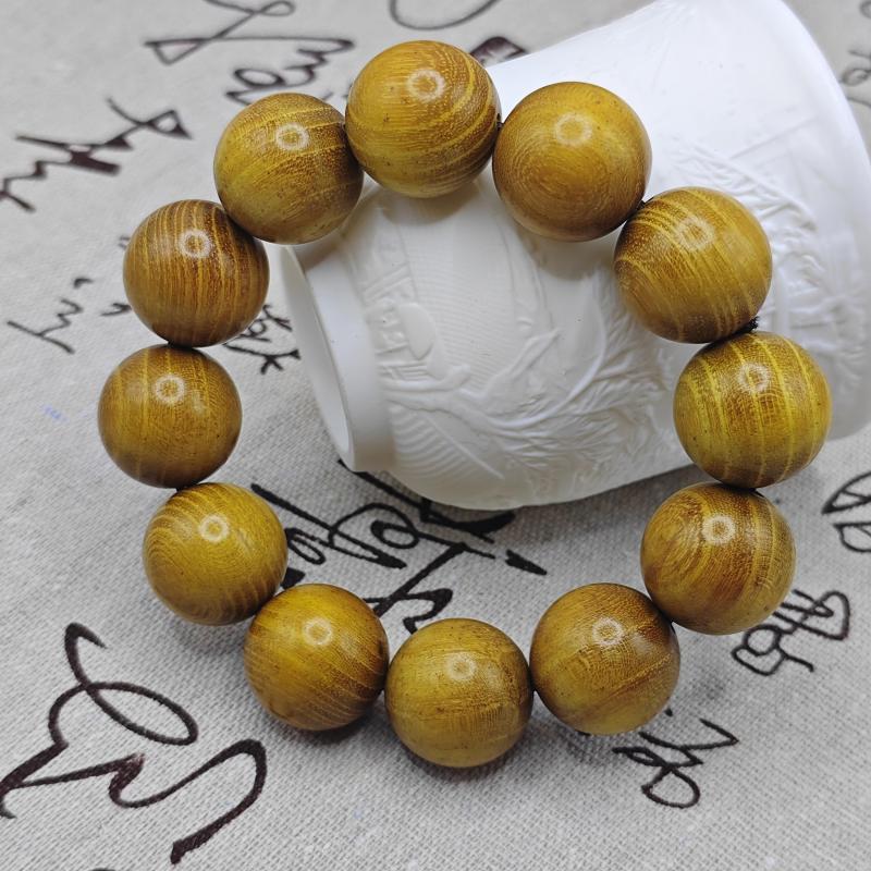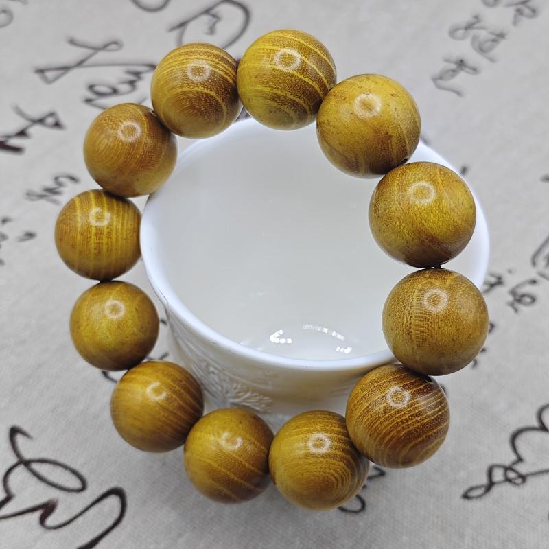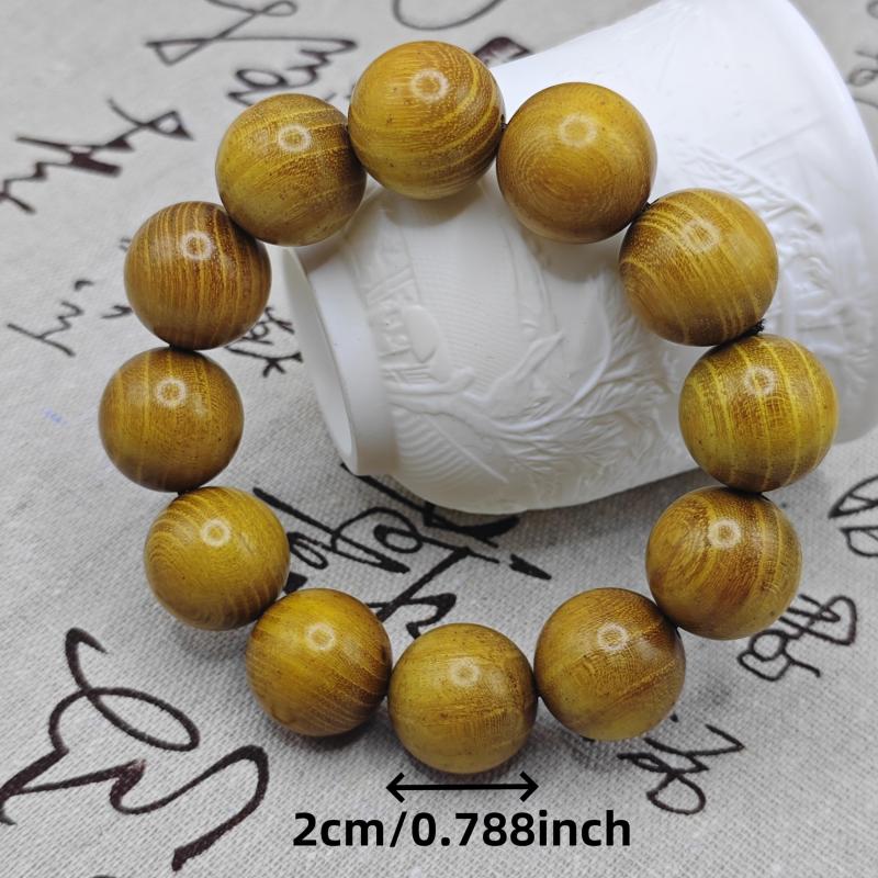 This stretchable bracelet features 20mm large natural golden sandalwood beads that symbolize prosperity and good fortune. Handcrafted with care to bring positive energy.