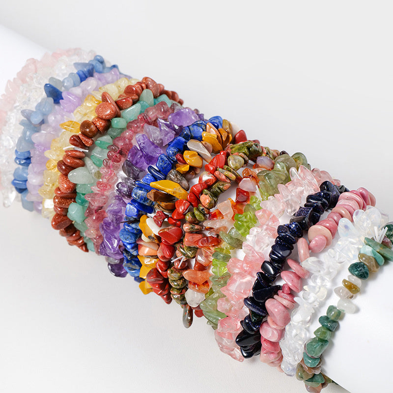This bracelet is made of natural citrine crystal gravel in various colors. It features an irregular gravel design and an elastic hand string for easy wearing.