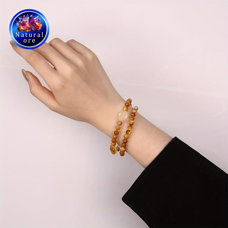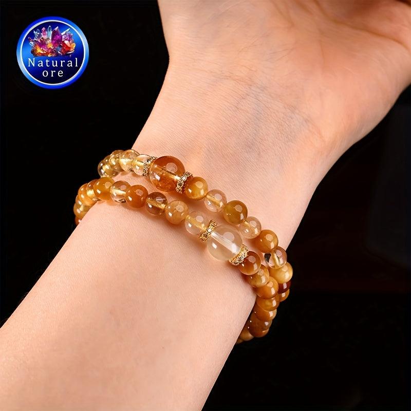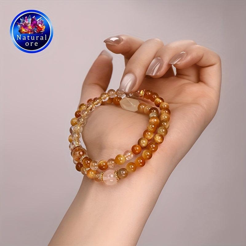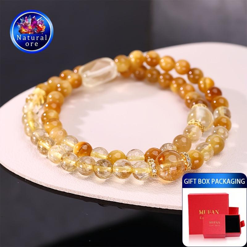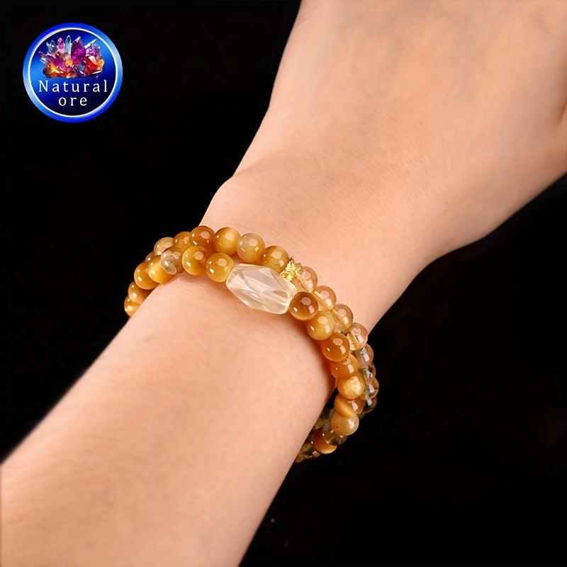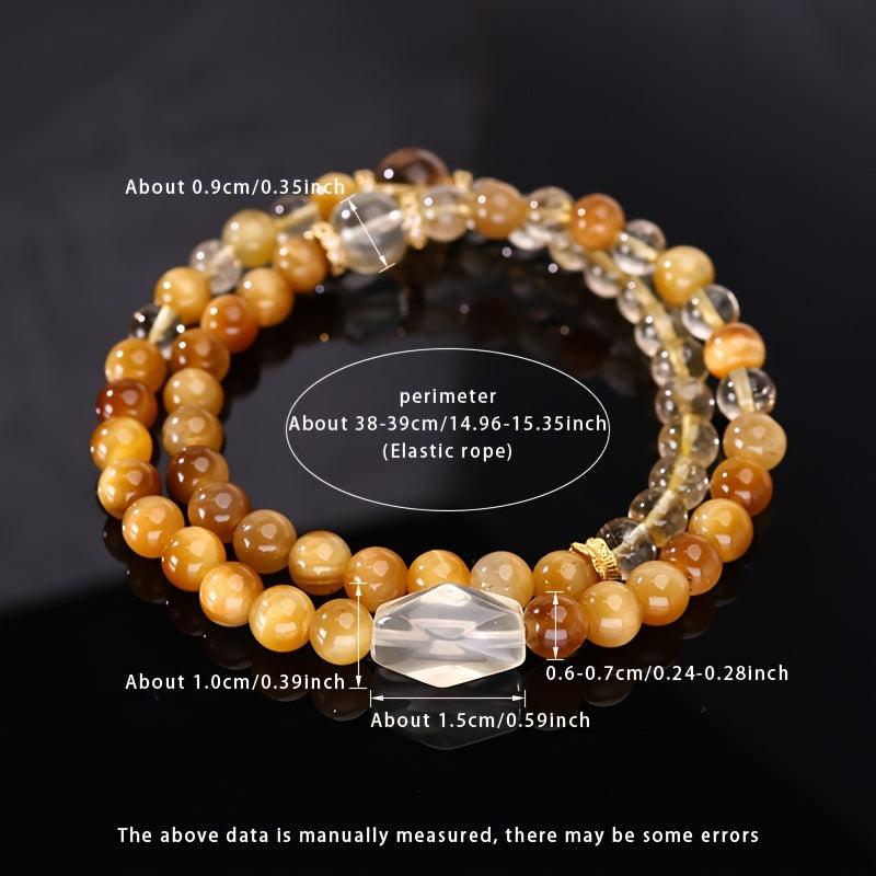 Elegantly crafted natural stone wrap bracelet with yellow stone featuring a tiger's eye bead. Can be worn twice and is suitable for any occasion.