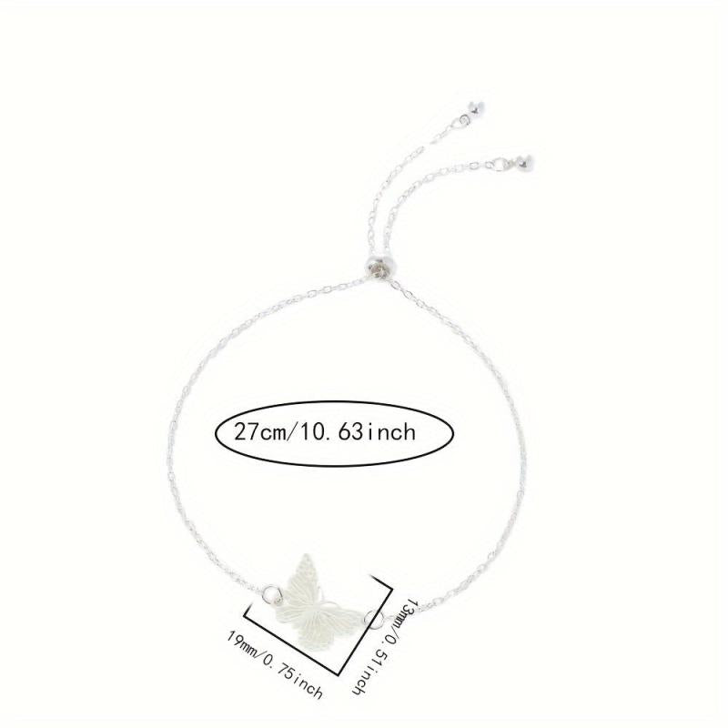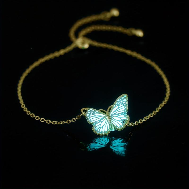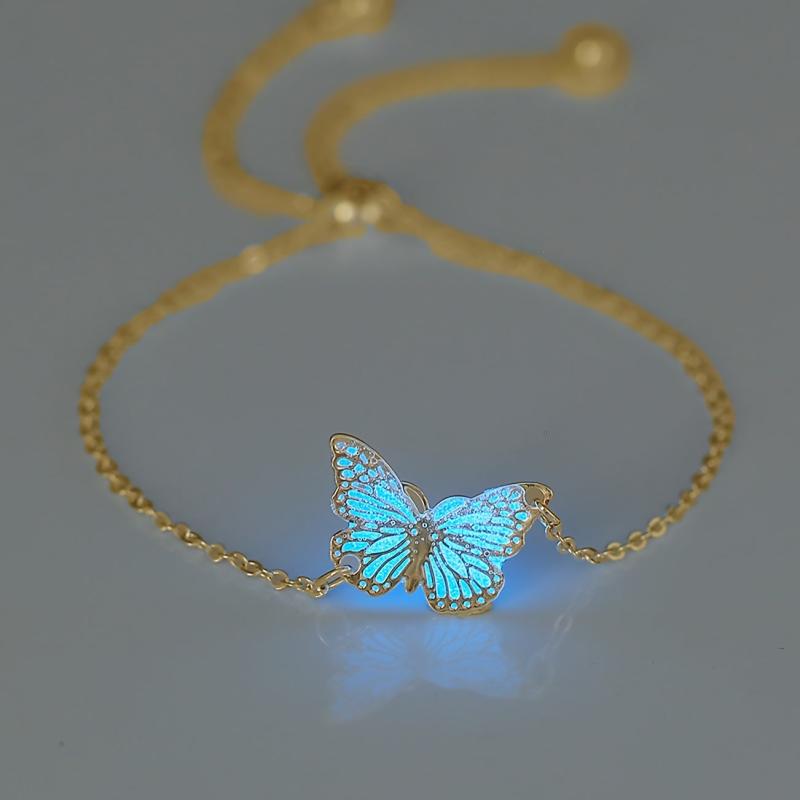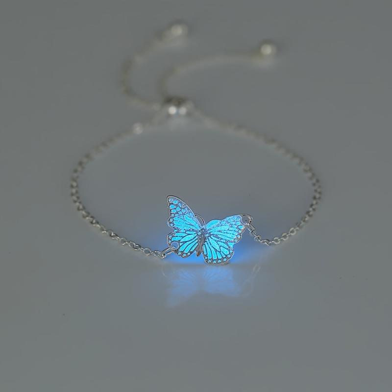 This beautiful bracelet is perfect for daily wear or special occasions. The glow-in-the-dark butterfly design adds a unique touch. Crafted from silver-plated copper with resin inlay, this bracelet is adjustable to fit all wrist sizes.
