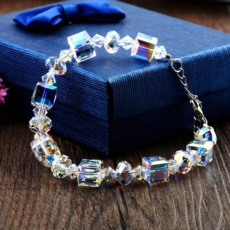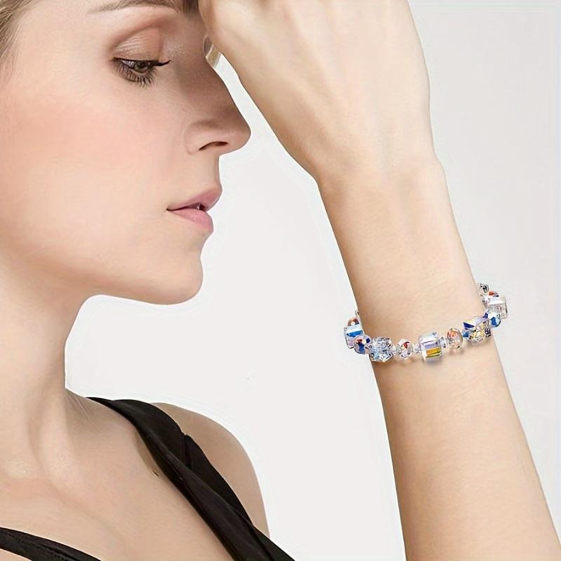This stunning bracelet features artificial crystals in a silvery design, making it the perfect gift for women on special occasions like birthdays and anniversaries.