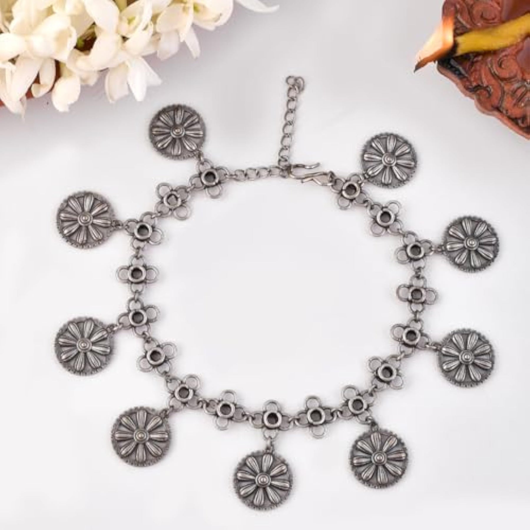 Elegant and stylish anklet featuring intricate link design. Perfect for adding a touch of glamour to your look.