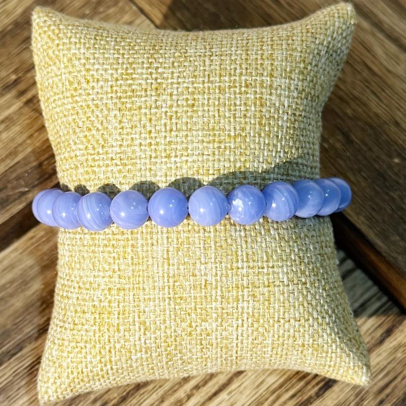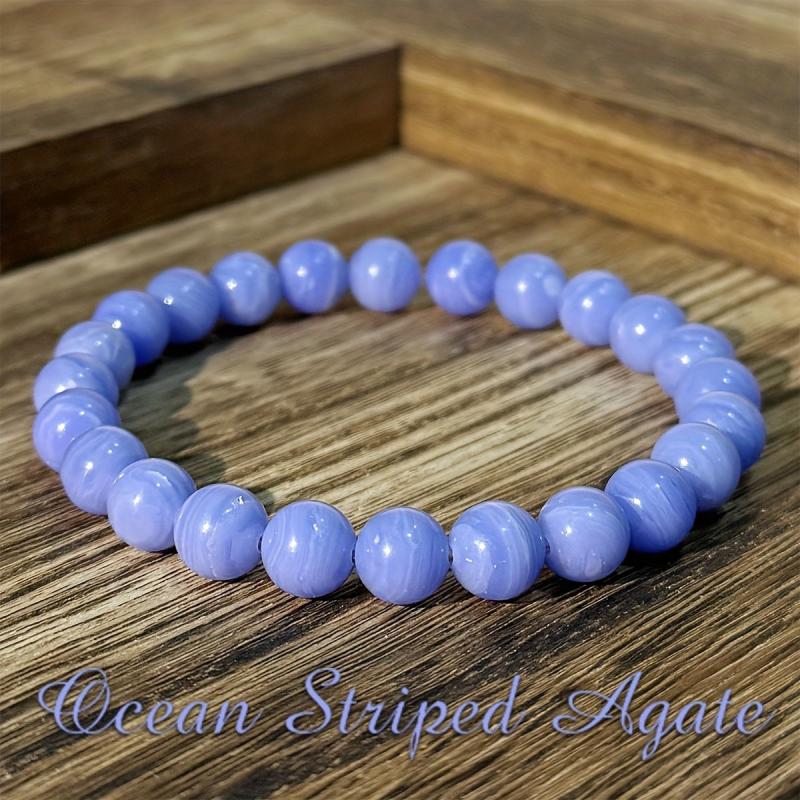 This agate bracelet is a beautiful piece made from natural ocean striped agate stone. It has a smooth polished finish and is the perfect gift for women or mothers born in July.