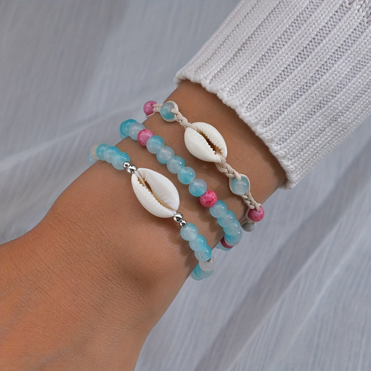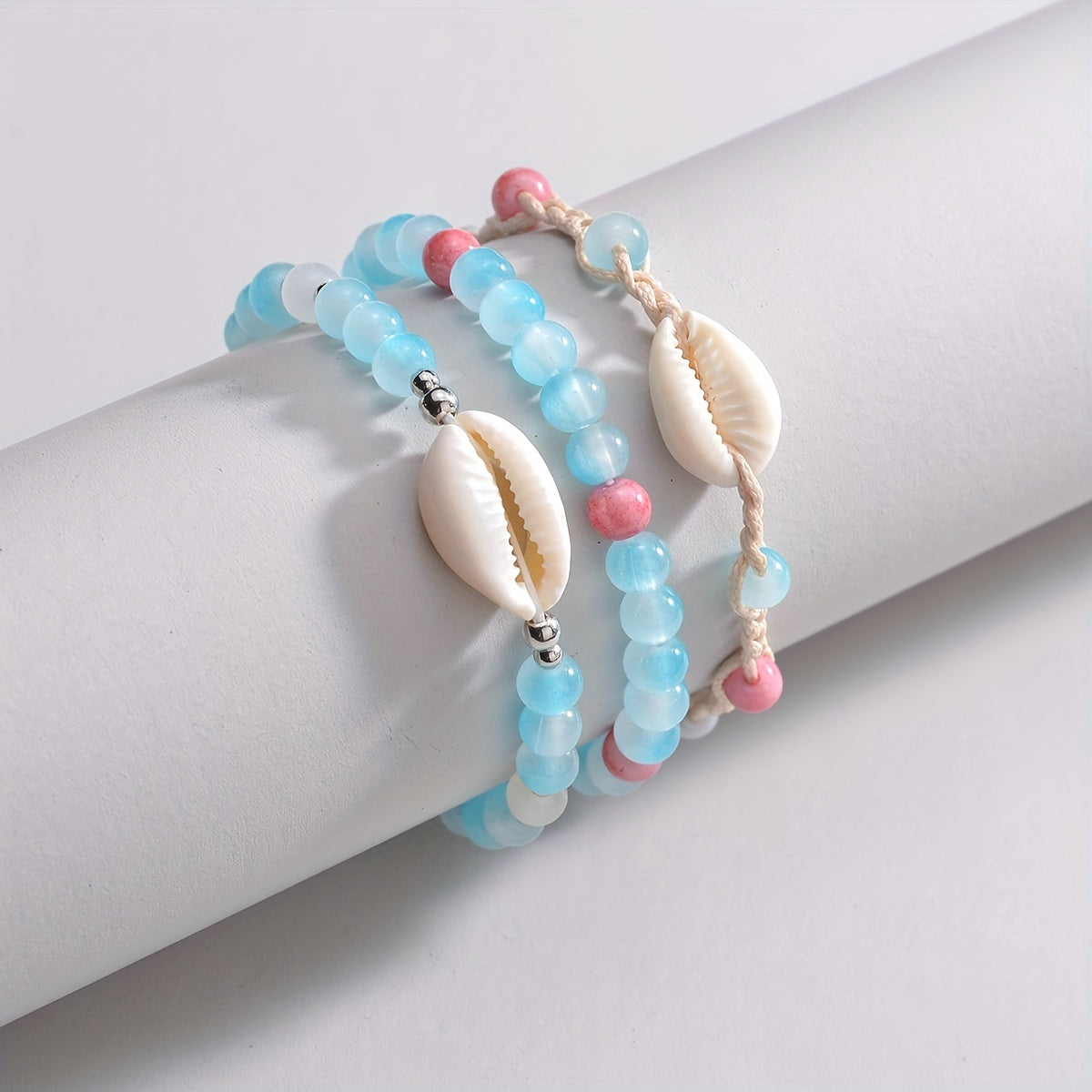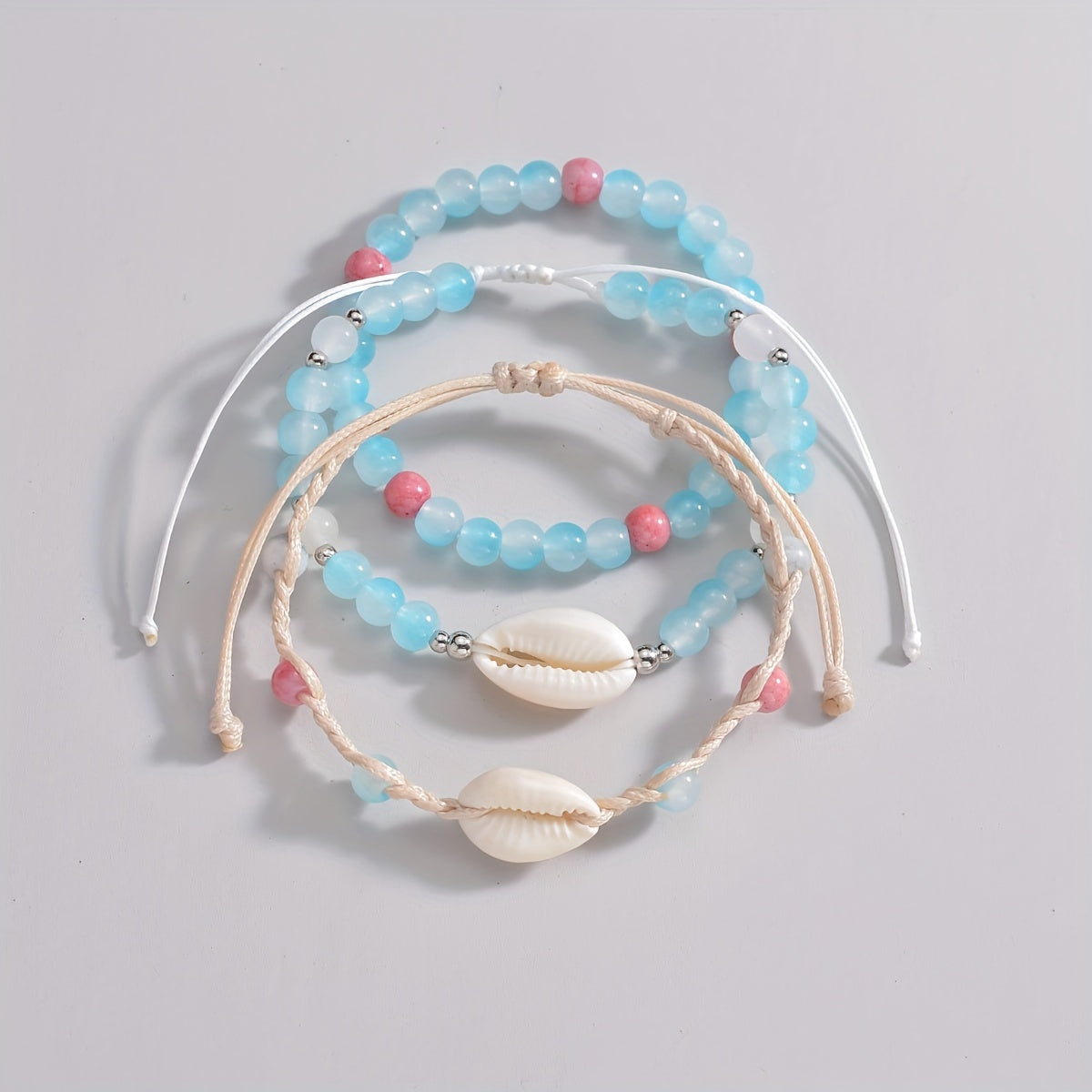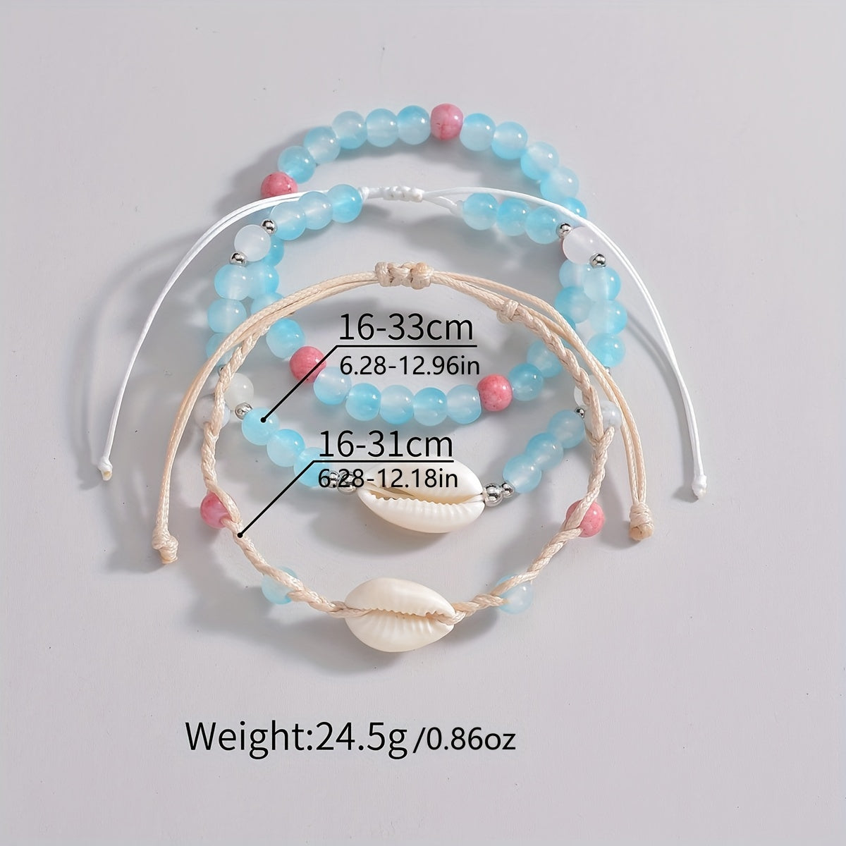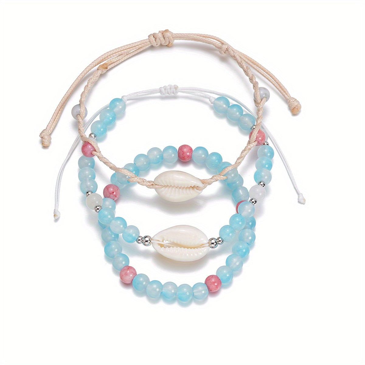 This 3-piece set features ocean-themed glass bead bracelets with adjustable braided design. Perfect gift for women and girls.