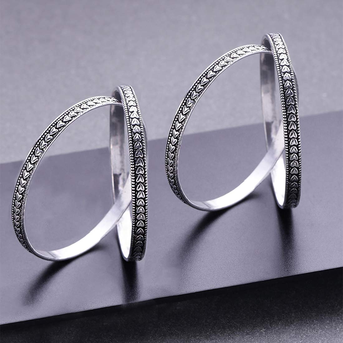 Enhance your ethnic look with this set of 4 oxidised bangles. Perfect for traditional occasions.