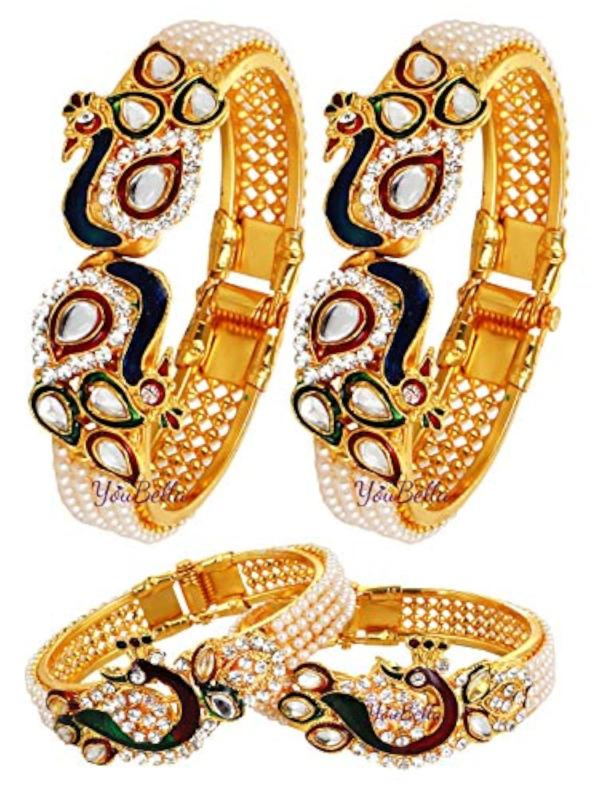Make a style statement with these stunning peacock design bangles embellished with American diamonds.