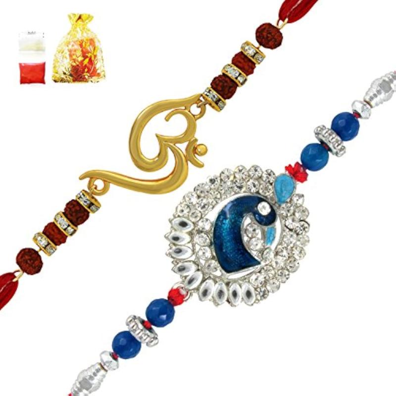 Celebrate the bond with this beautiful rakhi combo featuring peacock and divine om designs.