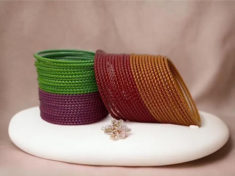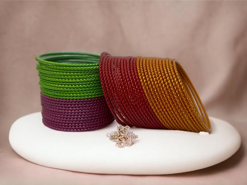 This stunning bangles set features beautiful pearl colors that will complement any outfit. The self-metal design adds a touch of elegance and sophistication to your look.