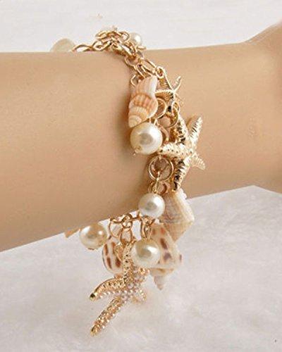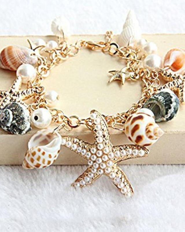 Add a touch of style with this elegant charm bracelet featuring pearls and star charms. Perfect gift for girls!