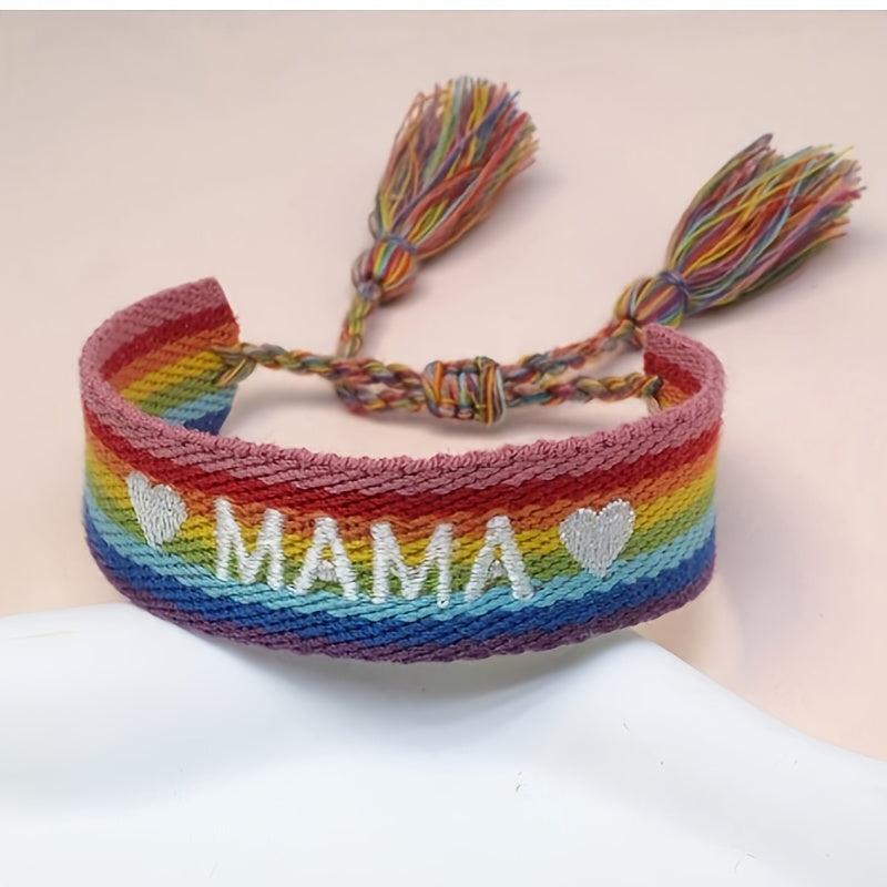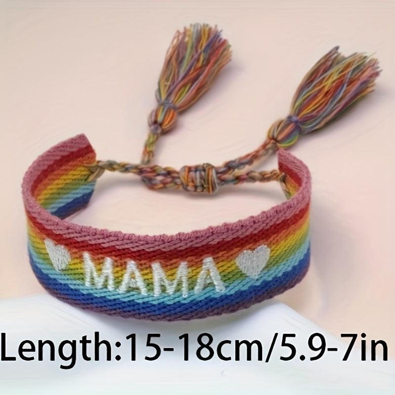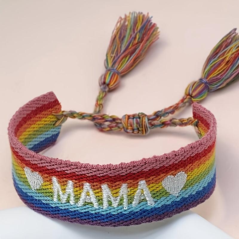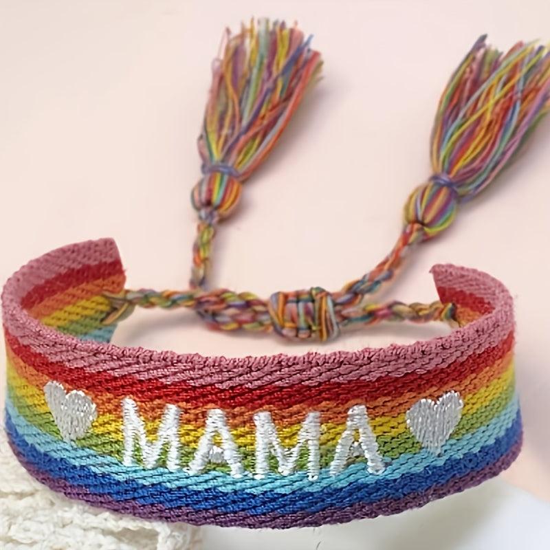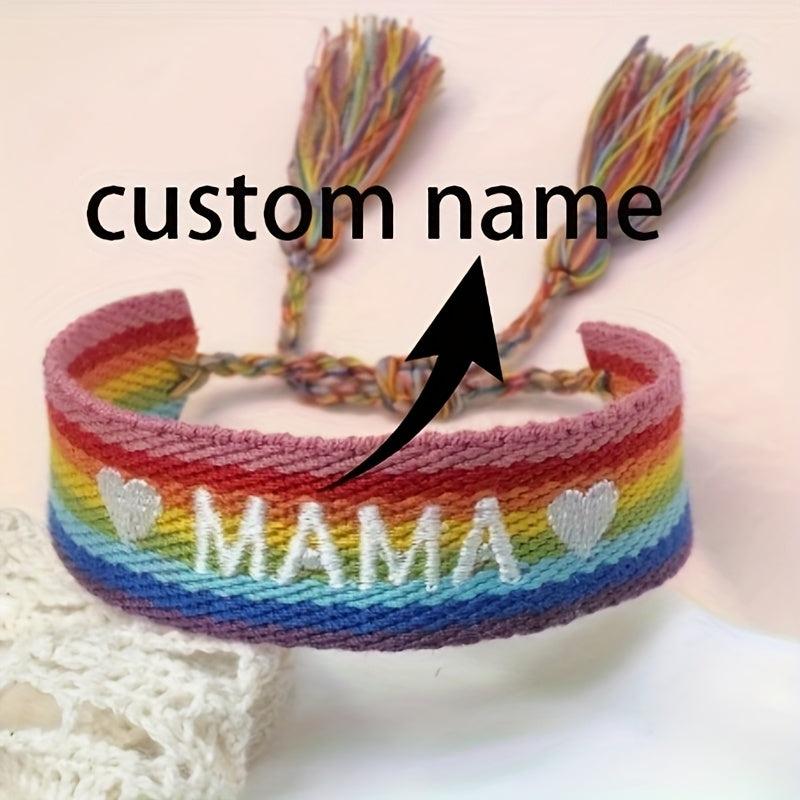 This hand chain bracelet features colorful strands with personalized name embroidery and a heart charm. Made from durable polyester, this minimalist jewelry makes a perfect gift for women.