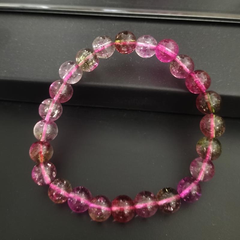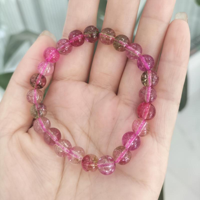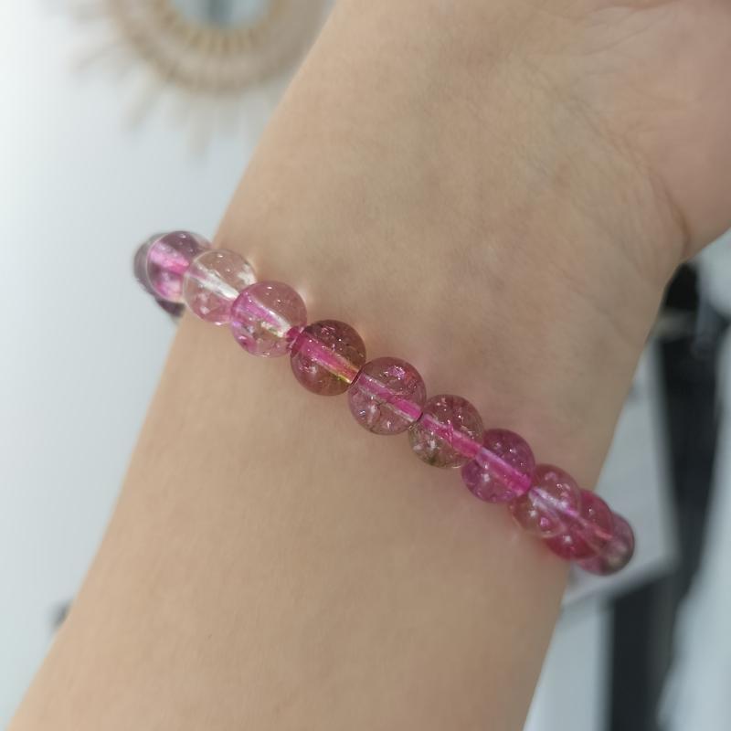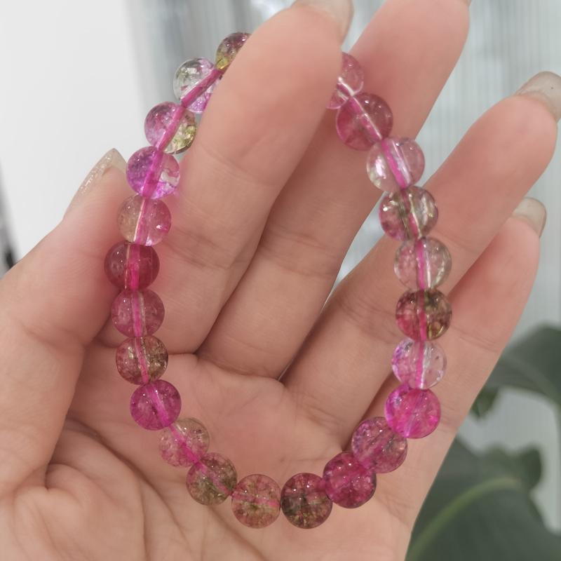 Handcrafted pink beaded bracelet with golden flakes, perfect for daily wear and gift giving. This fashionable accessory is ideal for everyday use.