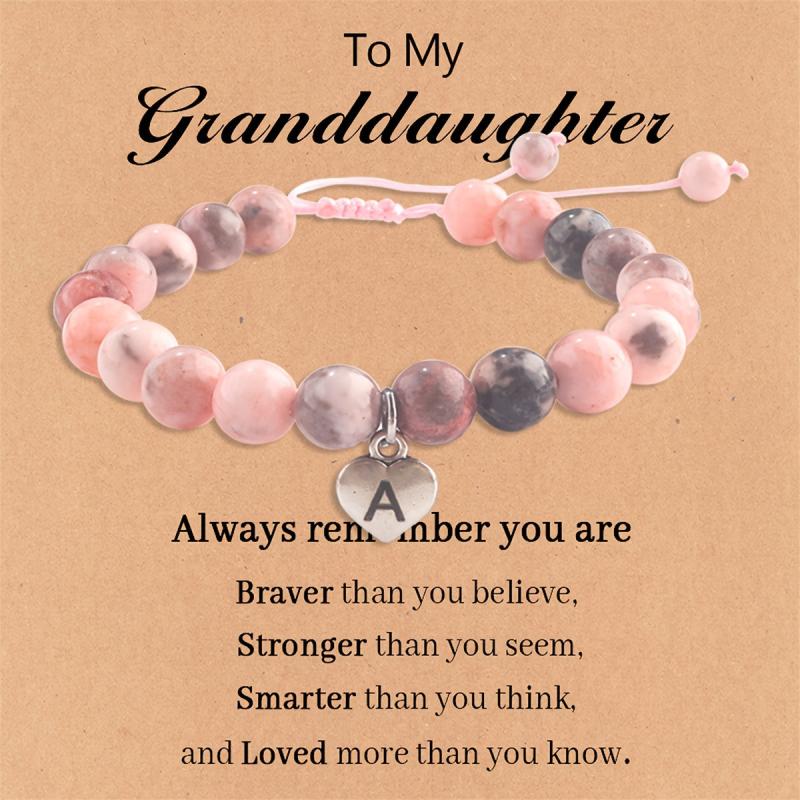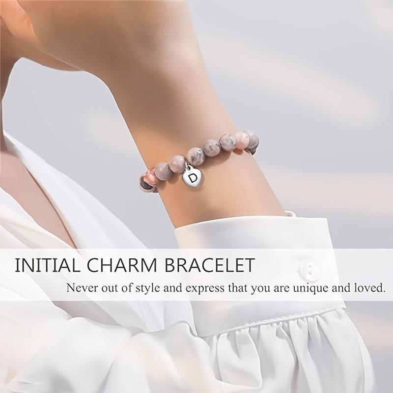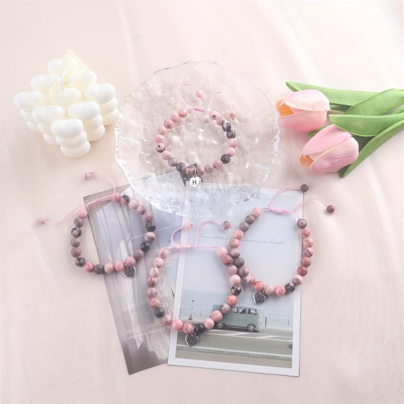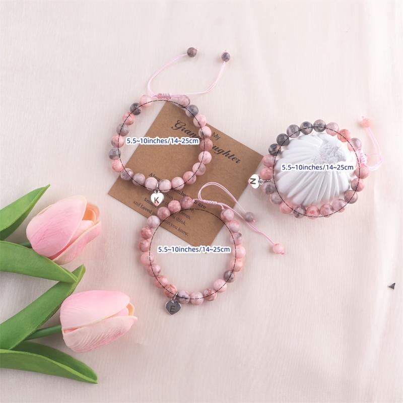 This beautiful pink beaded bracelet comes with an initial charm featuring the letter A or T. It makes a perfect jewelry gift for women, ideal for special occasions like the first day of school, birthdays, Christmas, or to surprise your granddaughter.