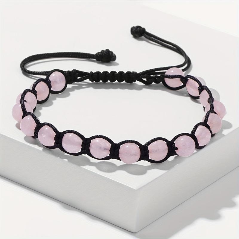 Elegant bracelet featuring pastel pink stones, adjustable knot design for everyday wear, perfect gift for women.