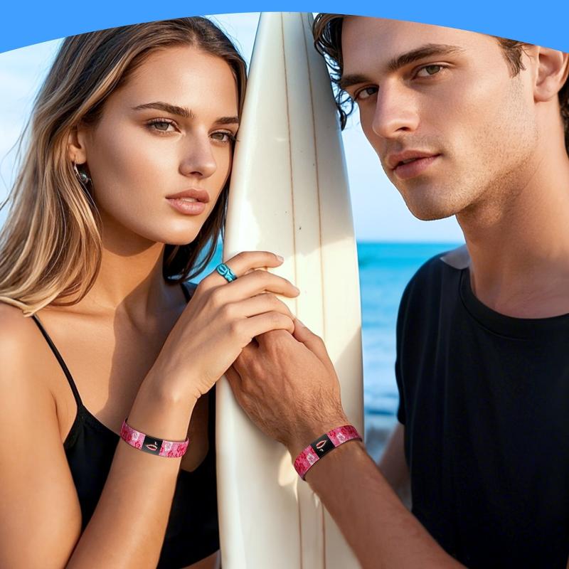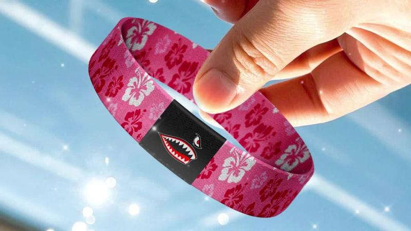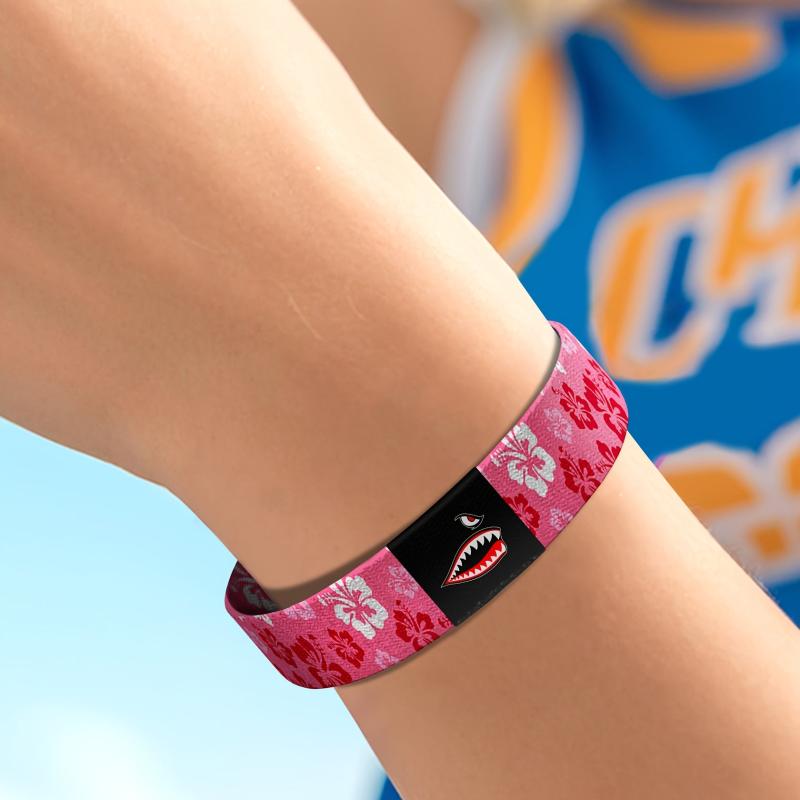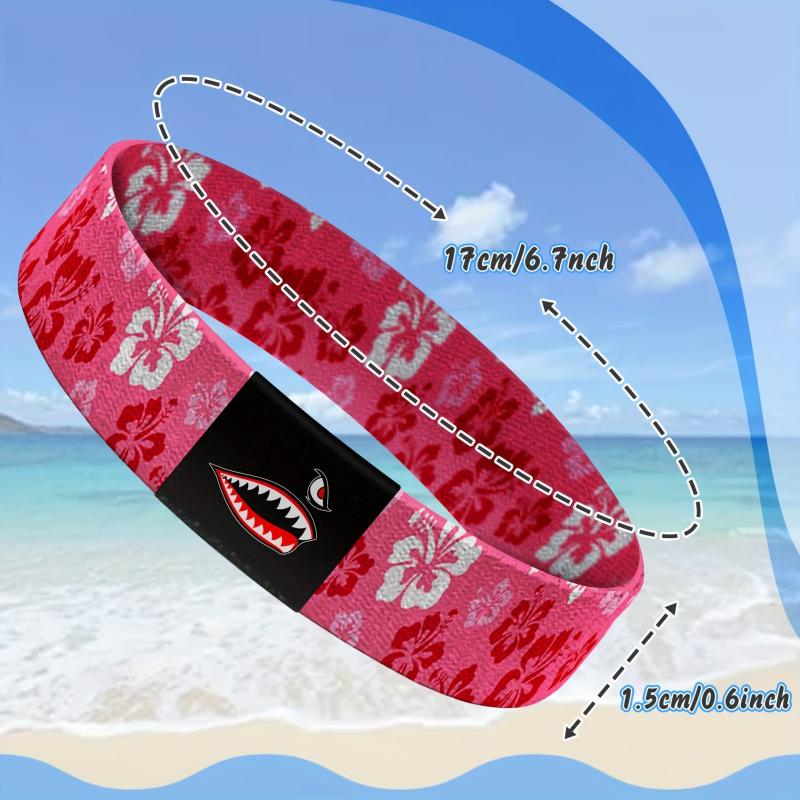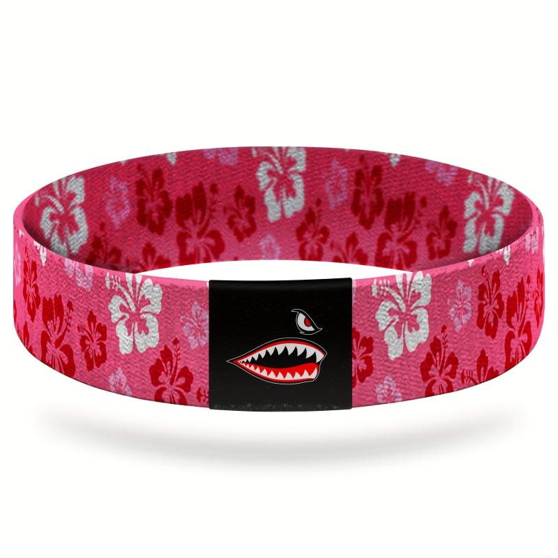 Add a touch of vintage charm to your outfit with this pink Hawaiian floral elastic bracelet featuring a unique shark design. Perfect for women, men, moms, family, and friends. Great for holiday parties and special occasions.