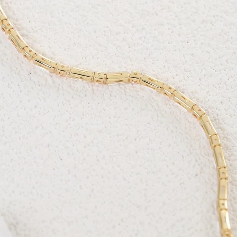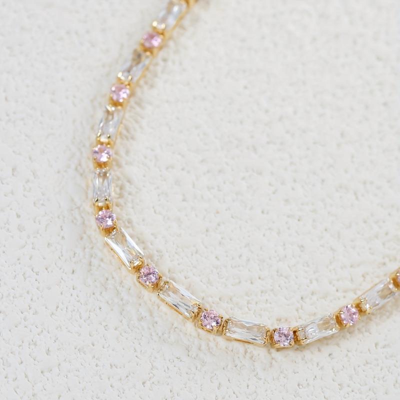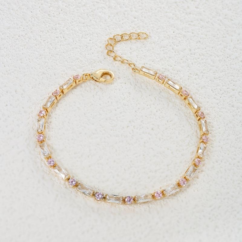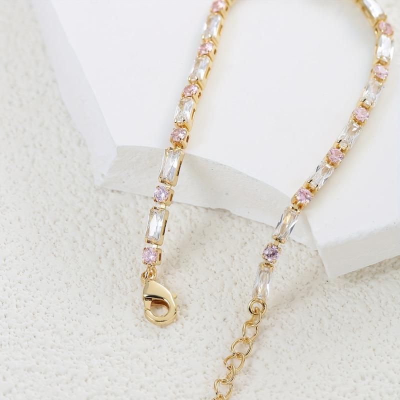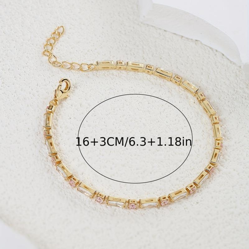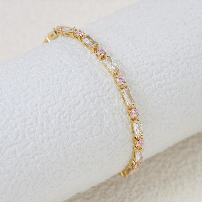 Elevate your look with this inlaid pink square shape zirconia tennis bracelet. This minimalist style hand jewelry adds a touch of elegance to any outfit.