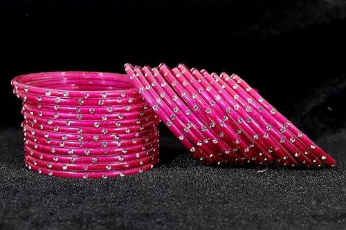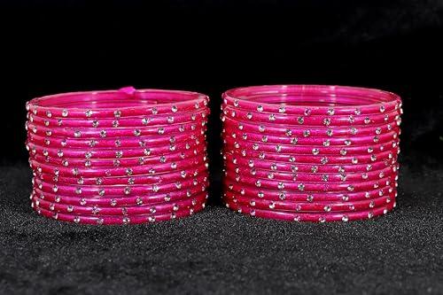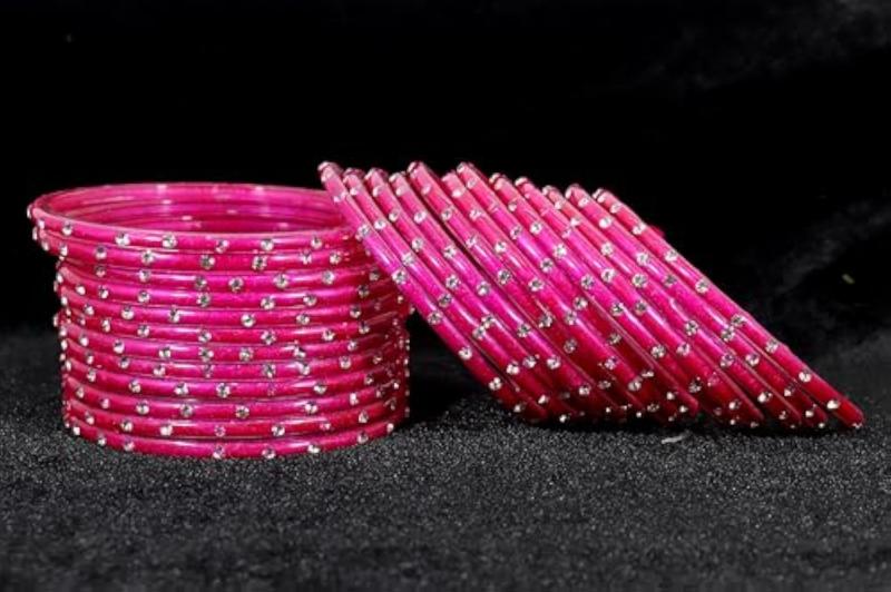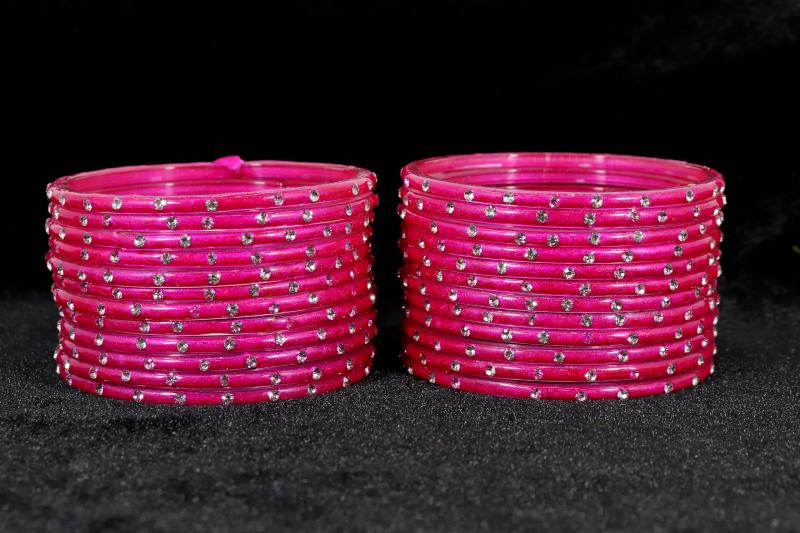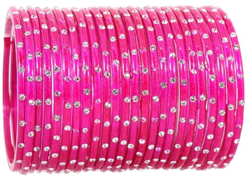 Enhance your style with this set of plain glass bangles featuring zircon stones. Perfect for adding a touch of elegance to your outfit.