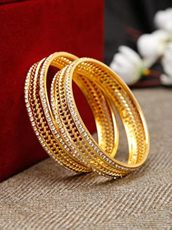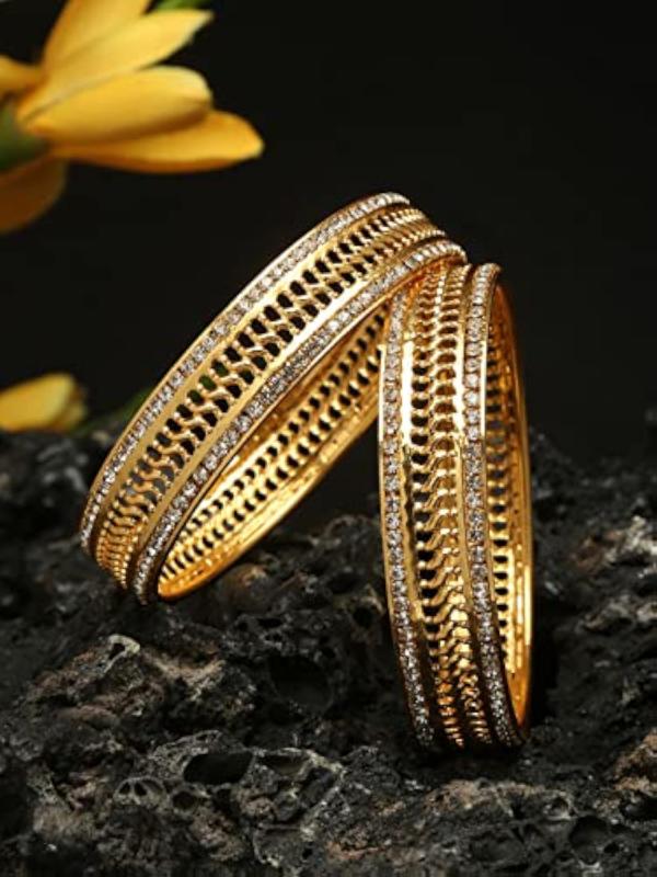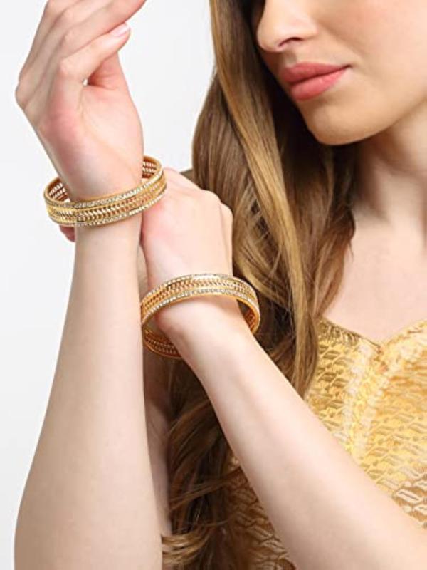 Elevate your traditional style with this set of 2 stylish bangles. Made of high-quality material with a plated finish, these bangles are perfect for everyday wear or special occasions.