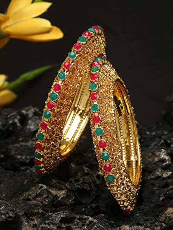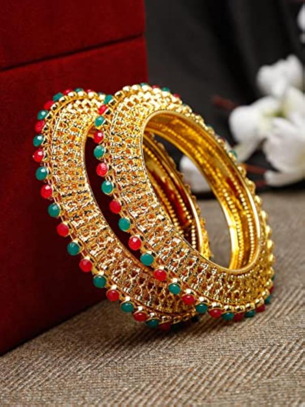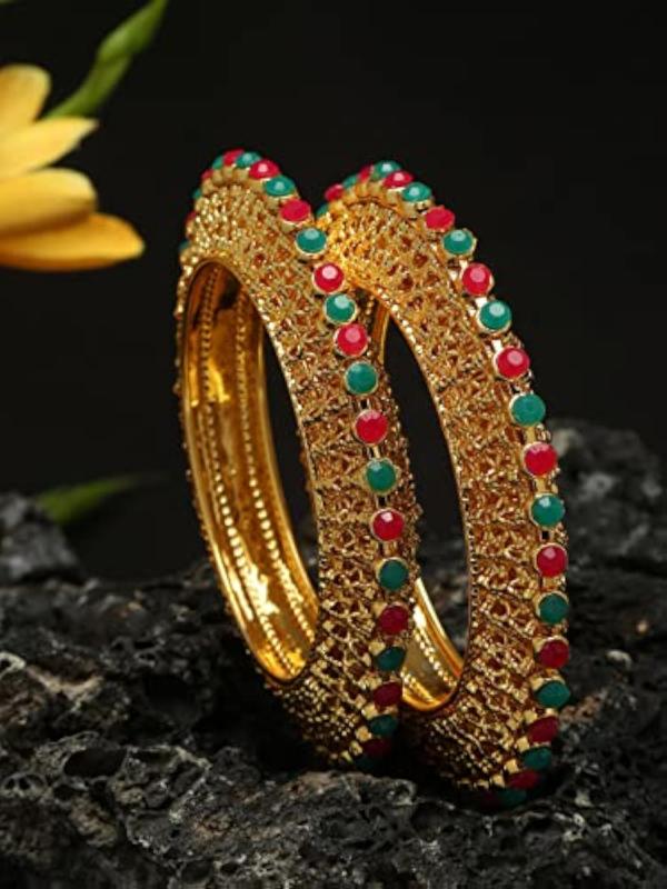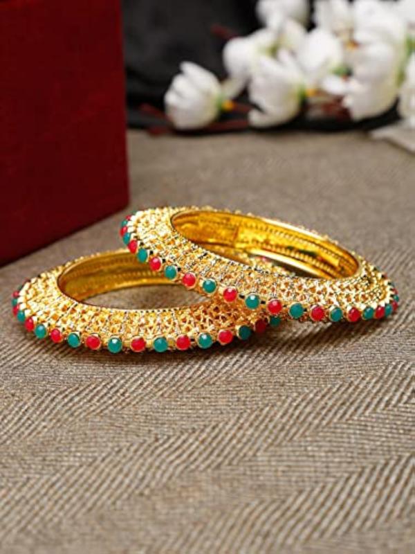 Elegant and stylish set of 2 traditional bangles with a plated finish. Perfect accessory for all occasions.