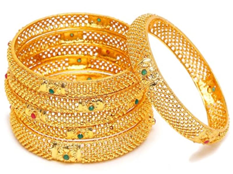 Enhance your traditional look with this set of 6 stylish bangles. These bangles are plated for a long-lasting shine and feature a traditional design that adds elegance to any outfit.